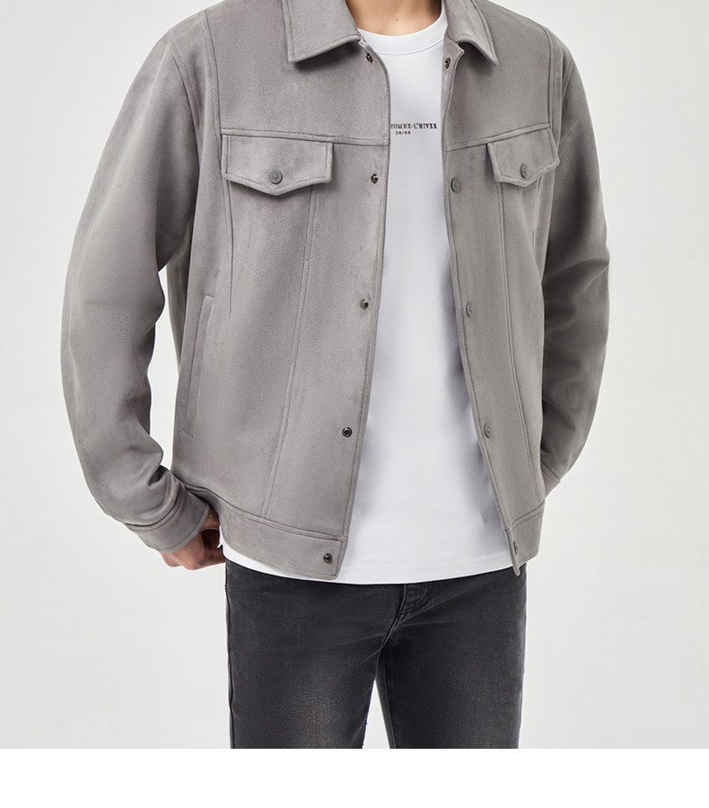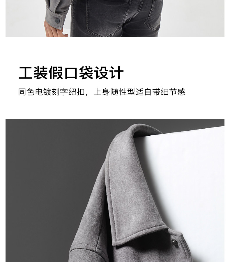 HIM漢崇 高级感仿麂皮绒牛仔夹克男潮流复古休闲短款外套2025秋季