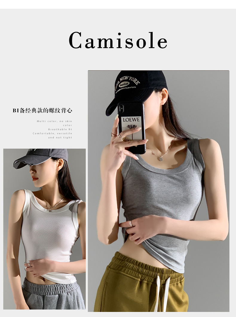 【两件起拍,一件不发货】【特价到手49元/两件】夏季新款8色吊带背心女内搭外穿无袖打底衫螺纹背心修身遮副乳上衣100%