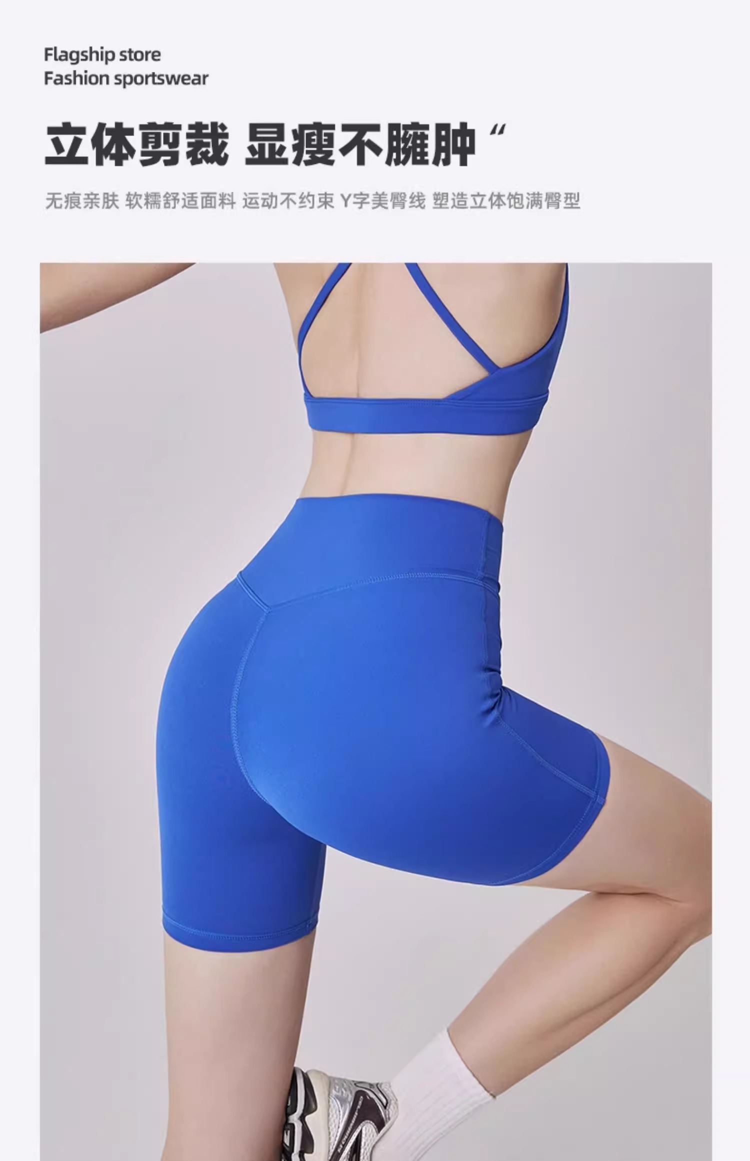 跃牌【化蝶双飞】系列 夏季新款裸感收腹瑜伽裤女提臀蜜桃运动短裤TM0169