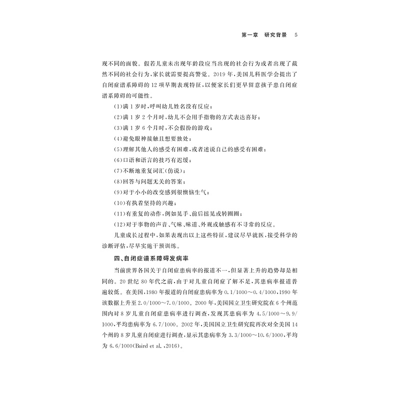 本书为教yu部高校人文社科项目研究成果。 神经发育障碍普遍存在于自闭症谱系障碍(Autism Spectrum Disorders,ASD)中,尤其是运动障碍。ASD动作发展的测量与评估有助于鉴别ASD的特殊运动损伤、可能涉及的潜在神经机制以及运动功能与其他领域的关系。本书对ASD儿童的动作发展障碍及其机制进行综述,采用横截面研究对ASD儿童动作发展现状进行评估,与正常儿童动作发展进行比较,分析其精细动作和粗大动作实际发展水平。同时采用脑电仪对ASD儿童进行脑电信号(EEG)活动水平测试,分析ASD儿童动作发展与脑电信号活动水平的相关性,进一步挖掘影响ASD儿童动作发展的脑电响应机制。