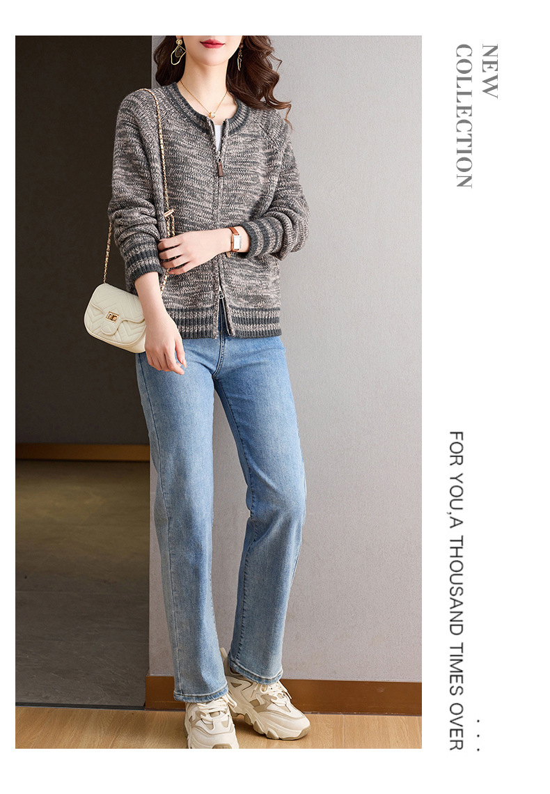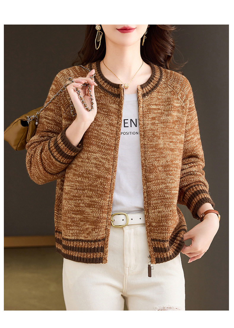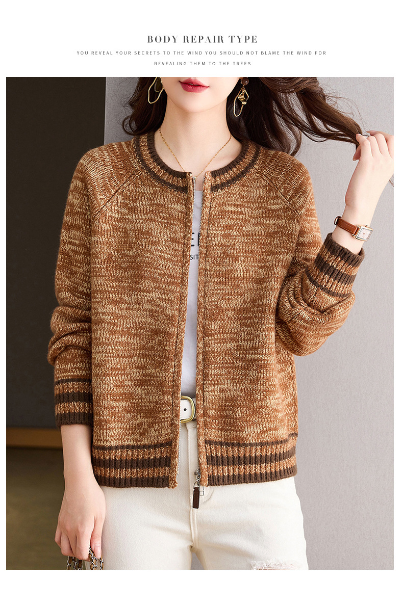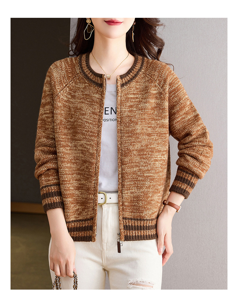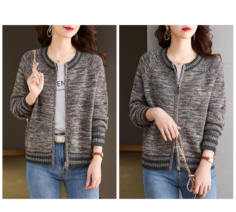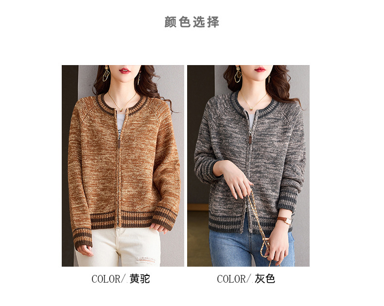 CC-26-8199针织棒球服外套女2024年秋冬新款拉链妈妈开衫女长袖加厚短款夹克