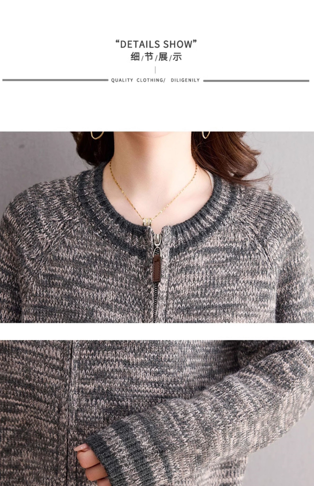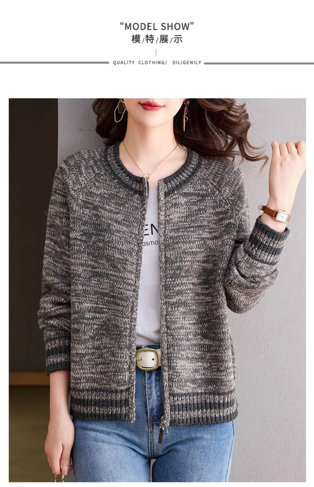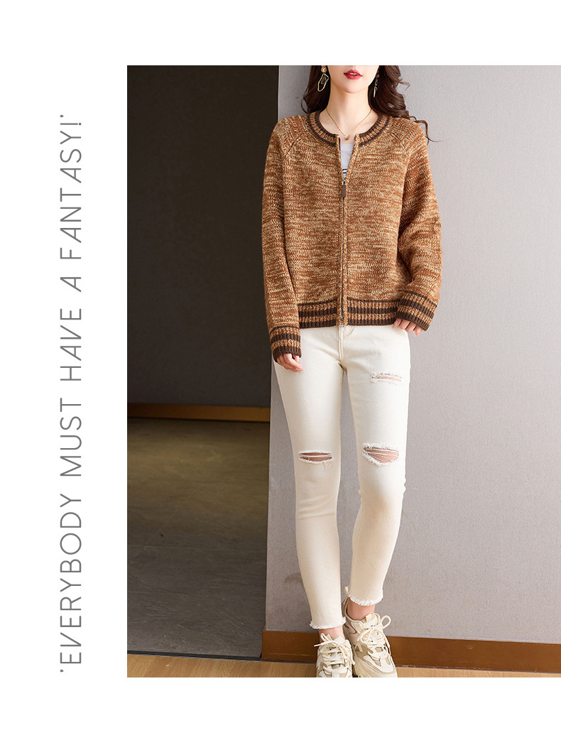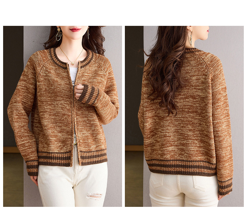 CC-26-8199针织棒球服外套女2024年秋冬新款拉链妈妈开衫女长袖加厚短款夹克