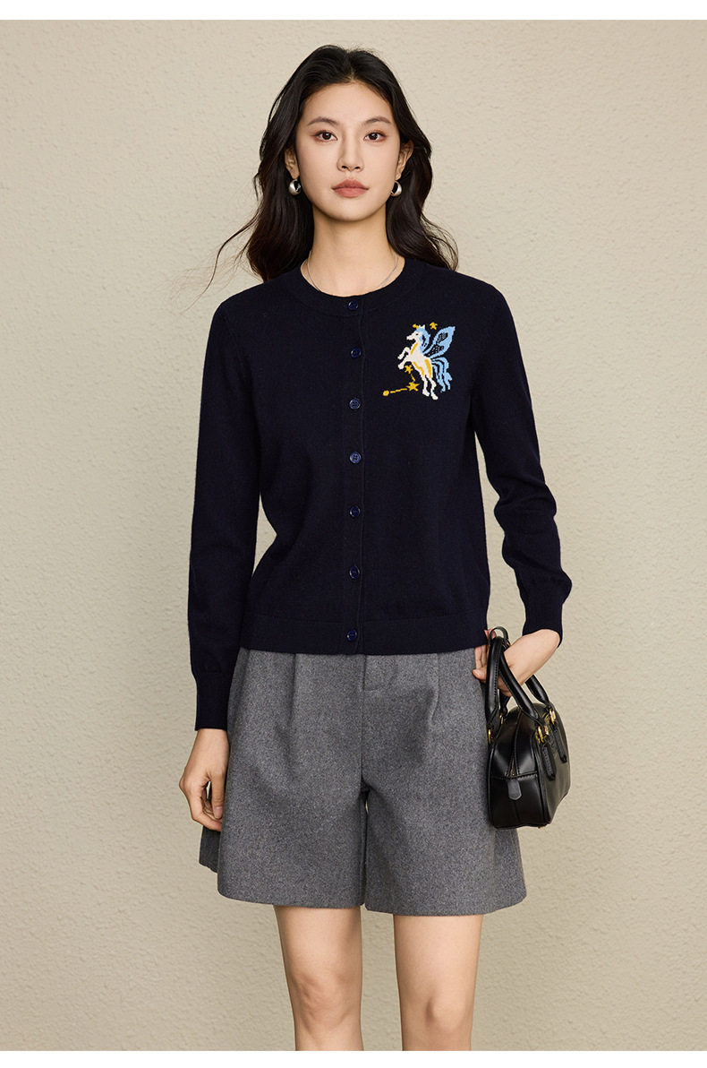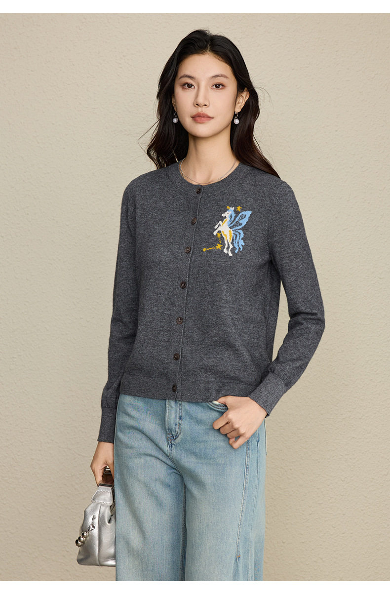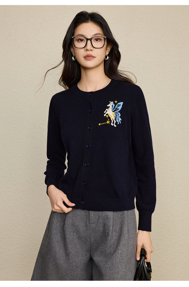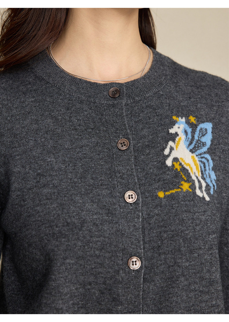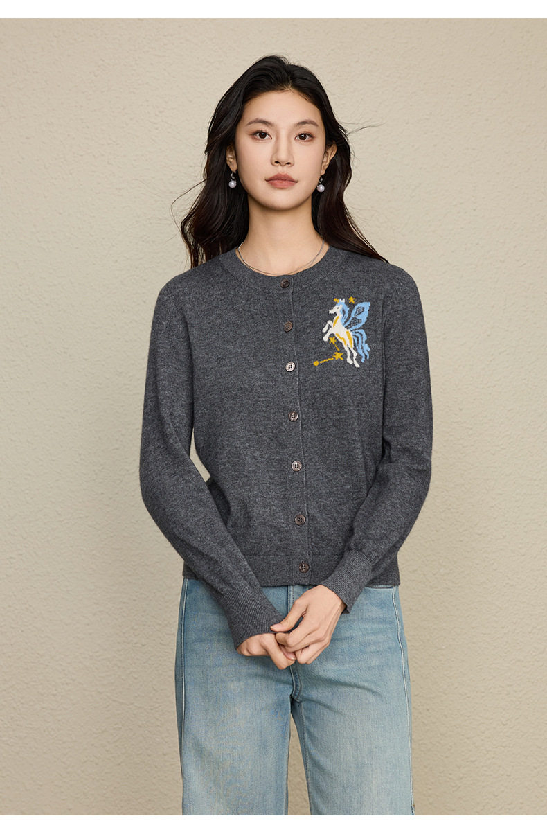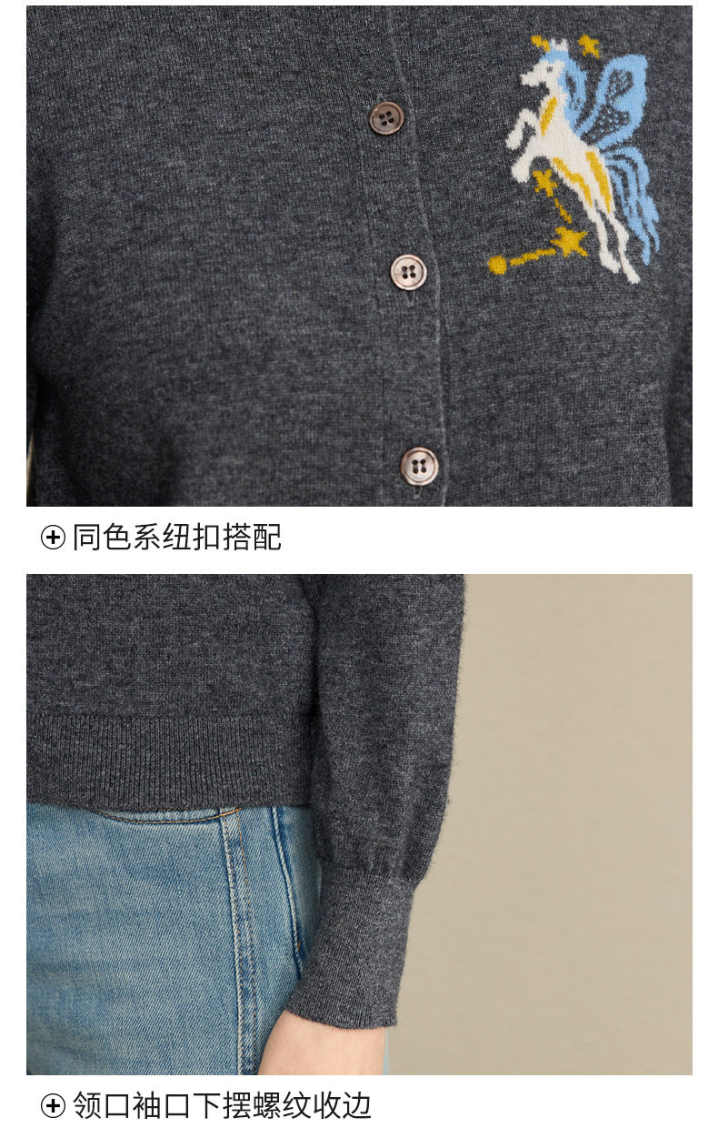 「高货rp」全新升级【铂金会员284/天猫379/差价95】(14749)洛诗琳新款飞马提花羊毛开衫2026新款气质圆领针织外套女