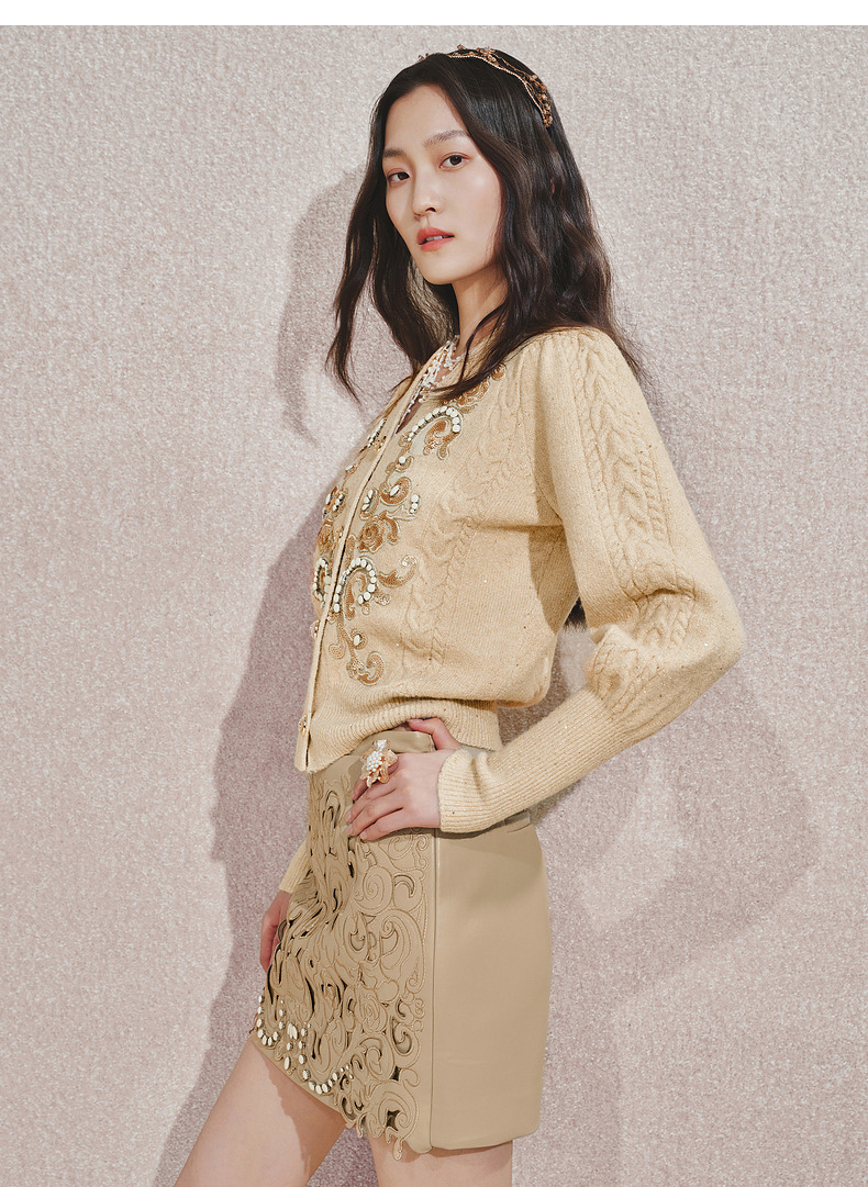 【宫廷巴洛克-商场同款】MAXRIENY复古宫廷针织外套女24冬新款(货号:MC85JA586)