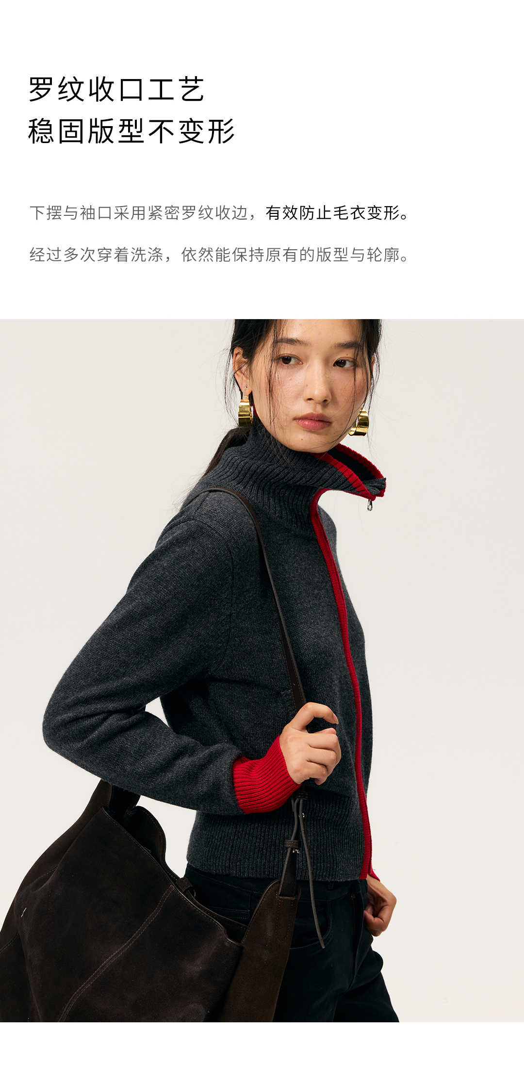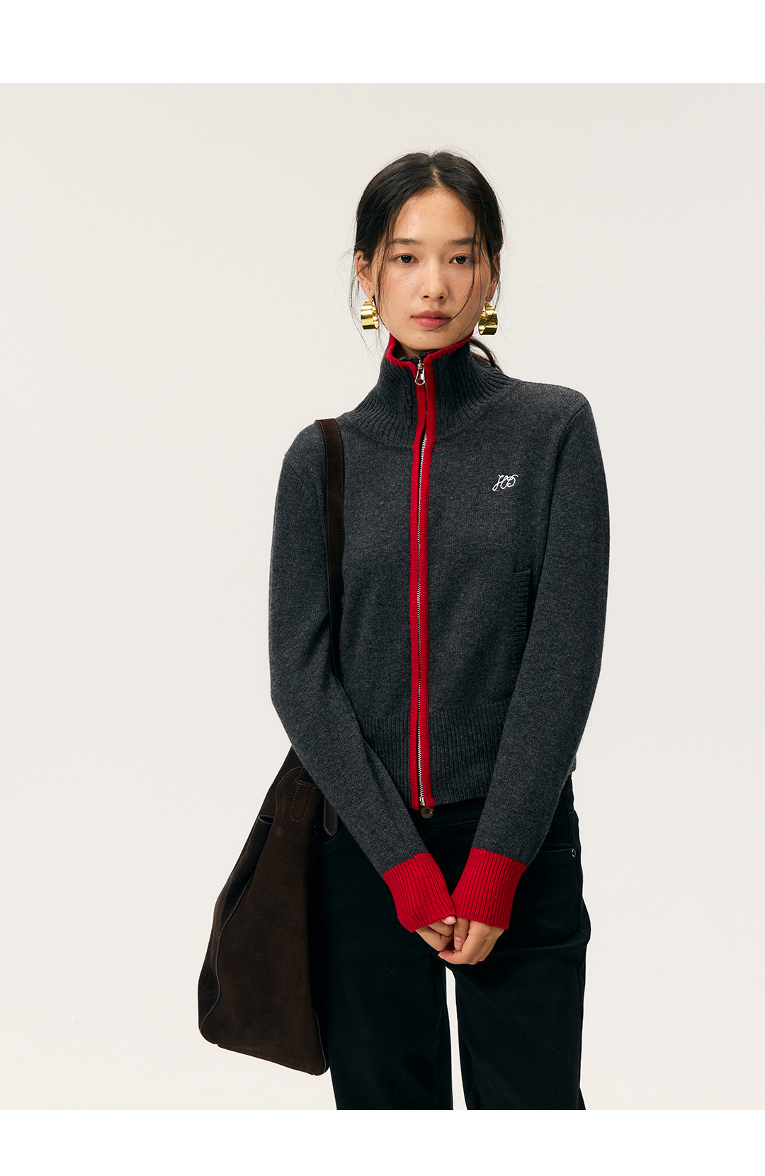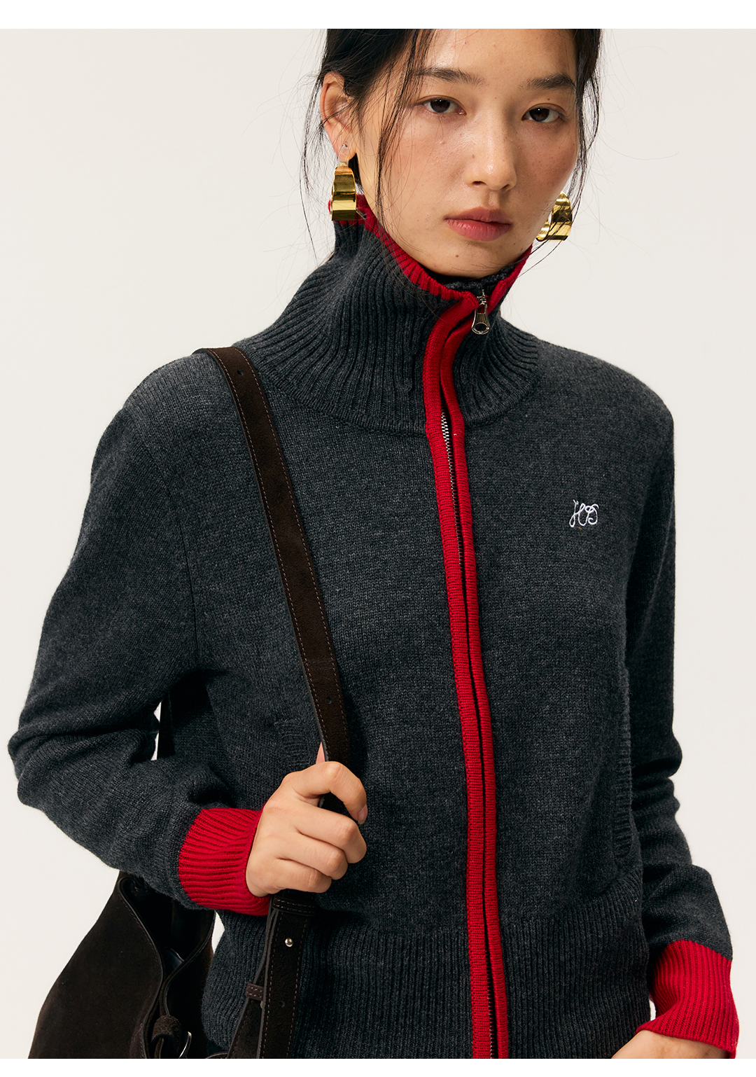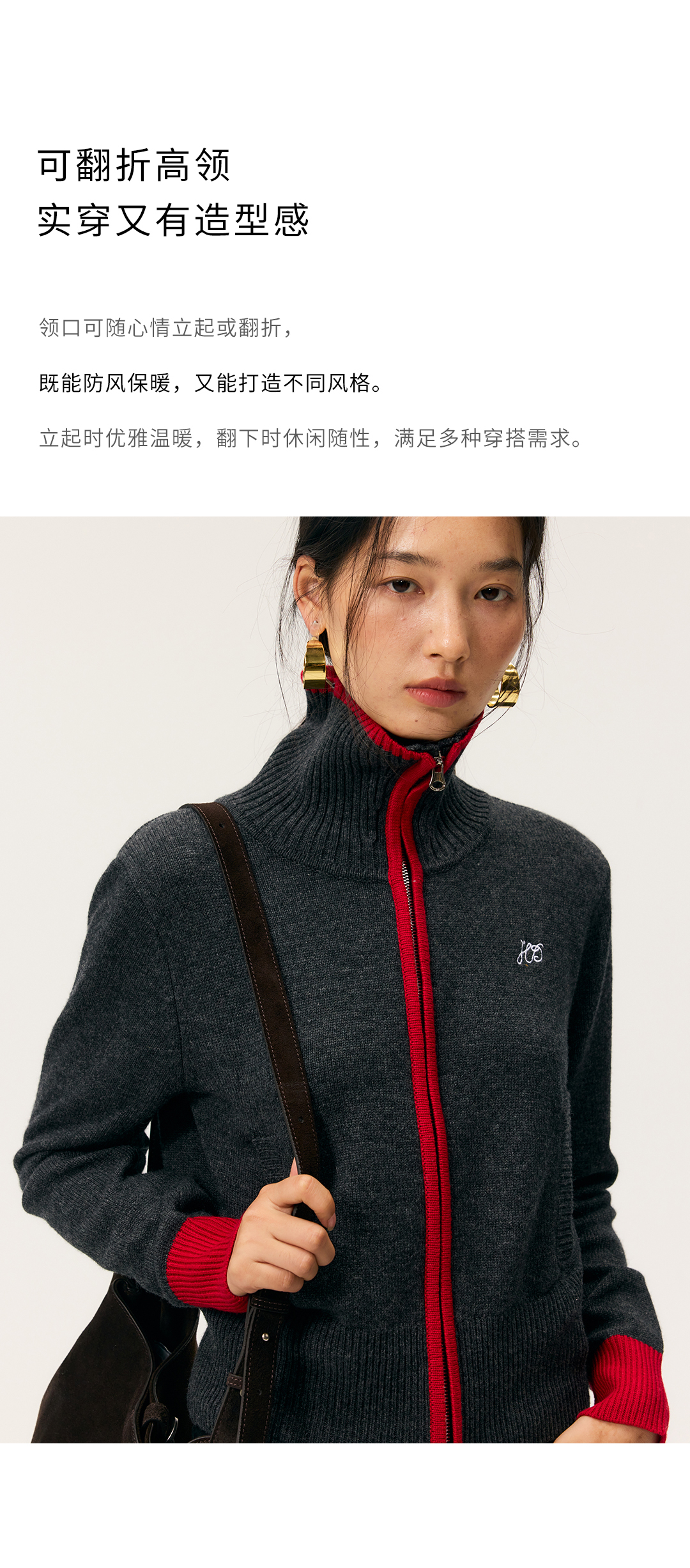 HeyDress撞色边拉链高领开衫