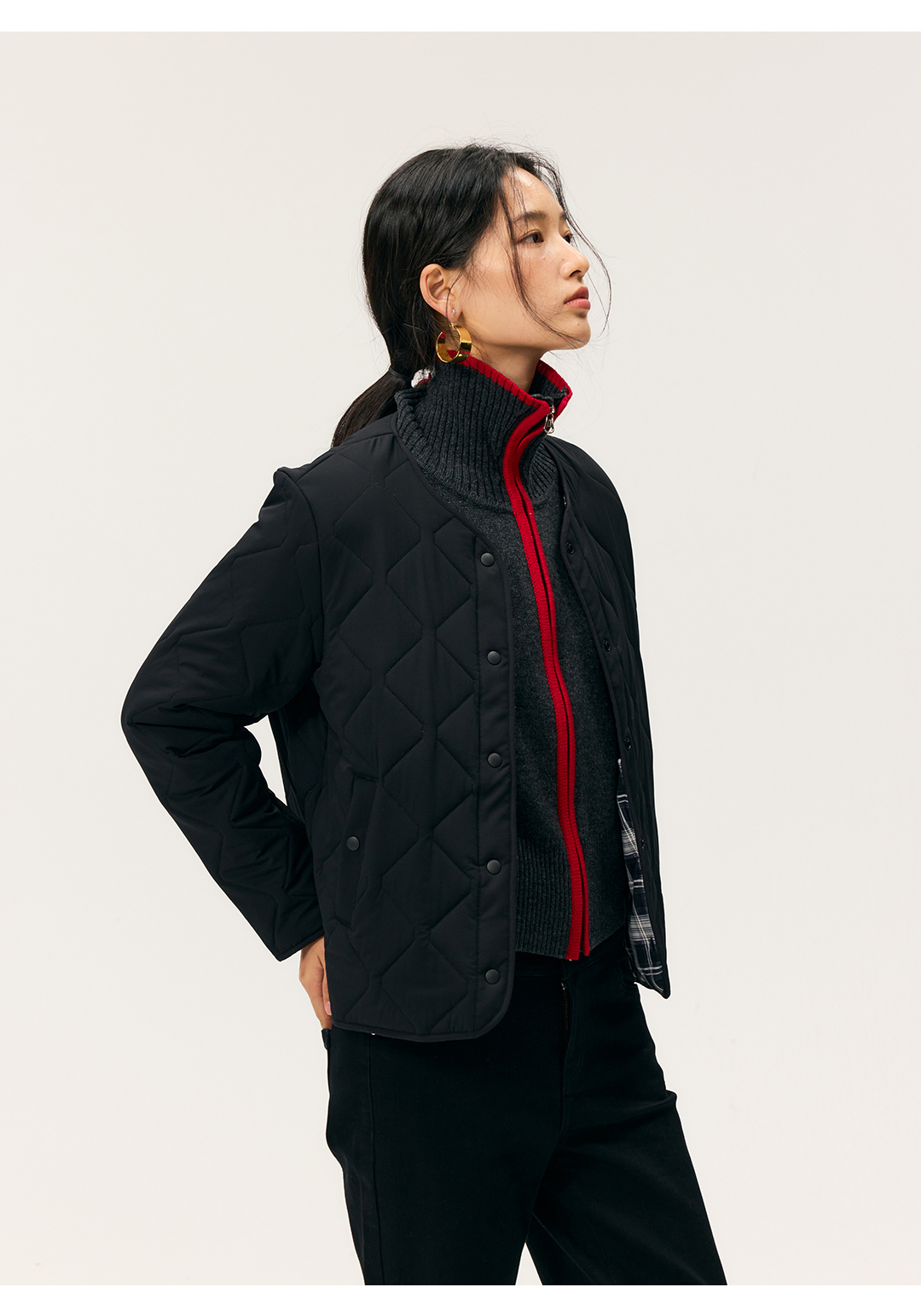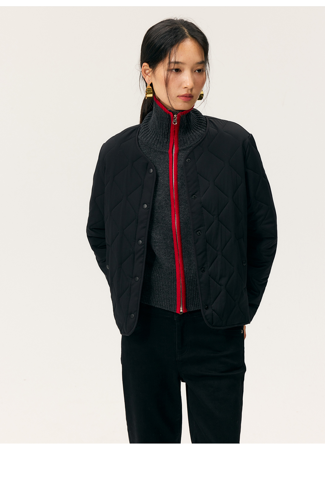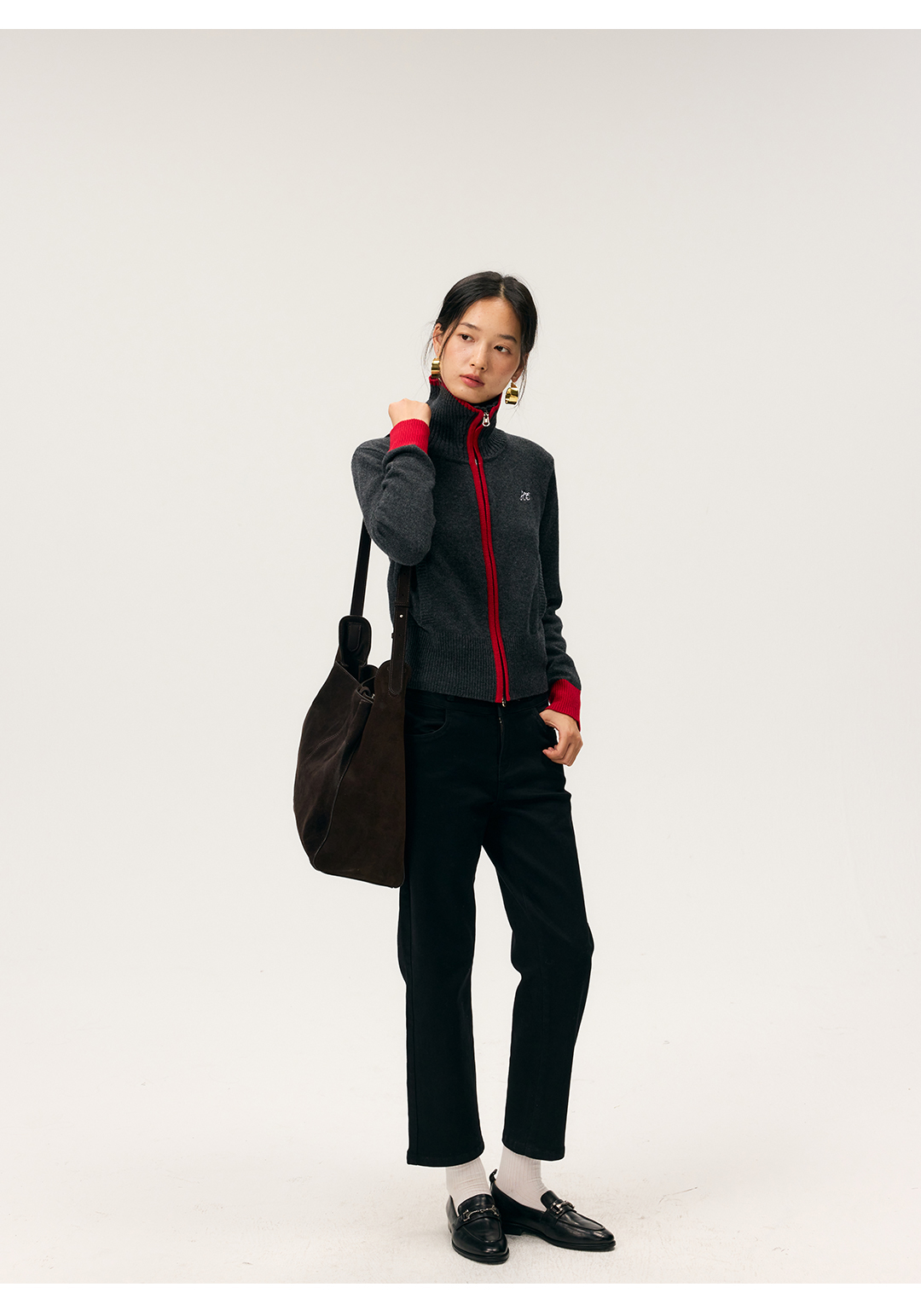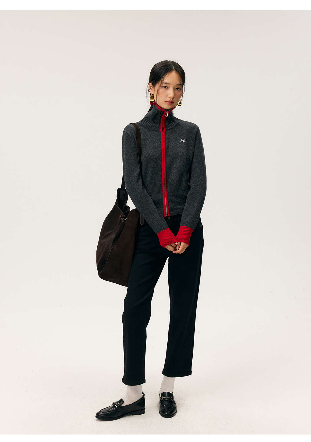 HeyDress撞色边拉链高领开衫