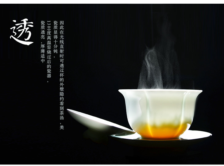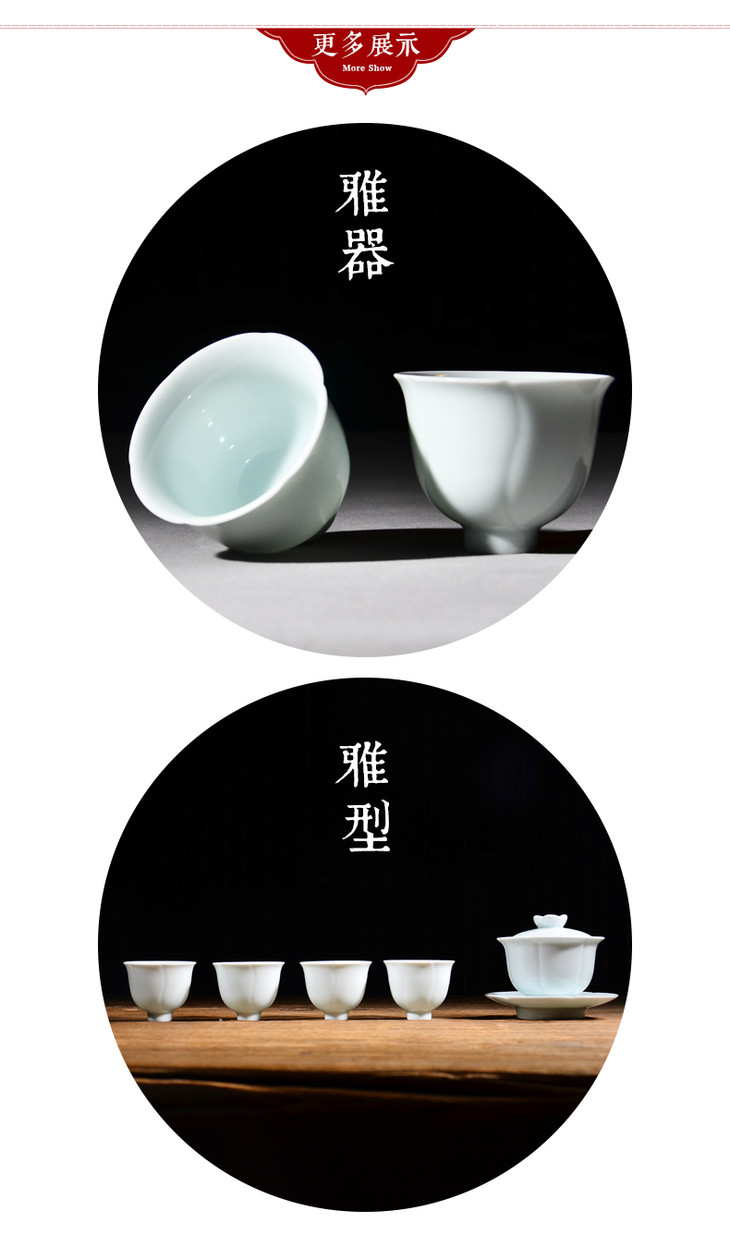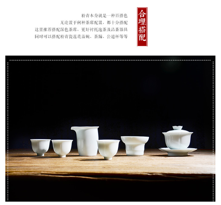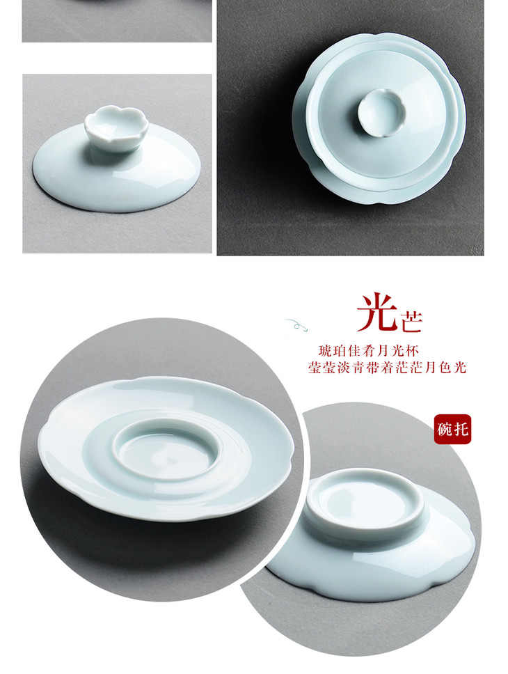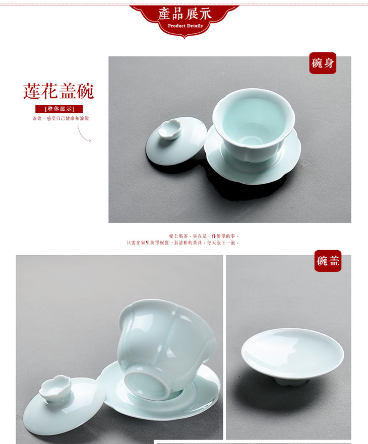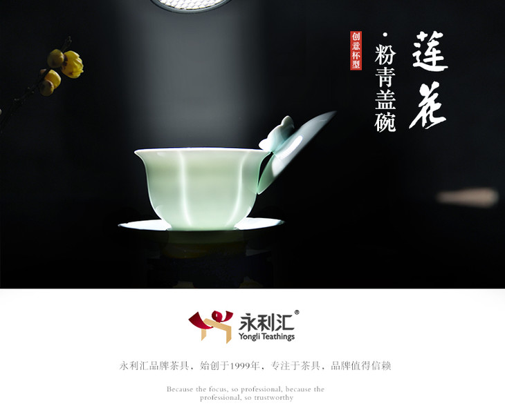 永利汇粉青瓷莲花型盖碗三才茶碗盖杯敬茶杯陶瓷功夫茶具配件