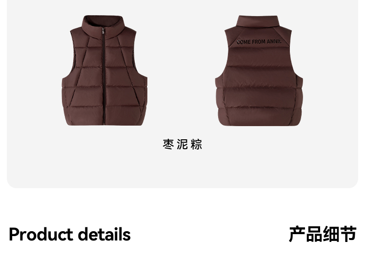 【三防羽绒服】男女童立领羽绒马甲冬季新款安奈儿童装EM542566