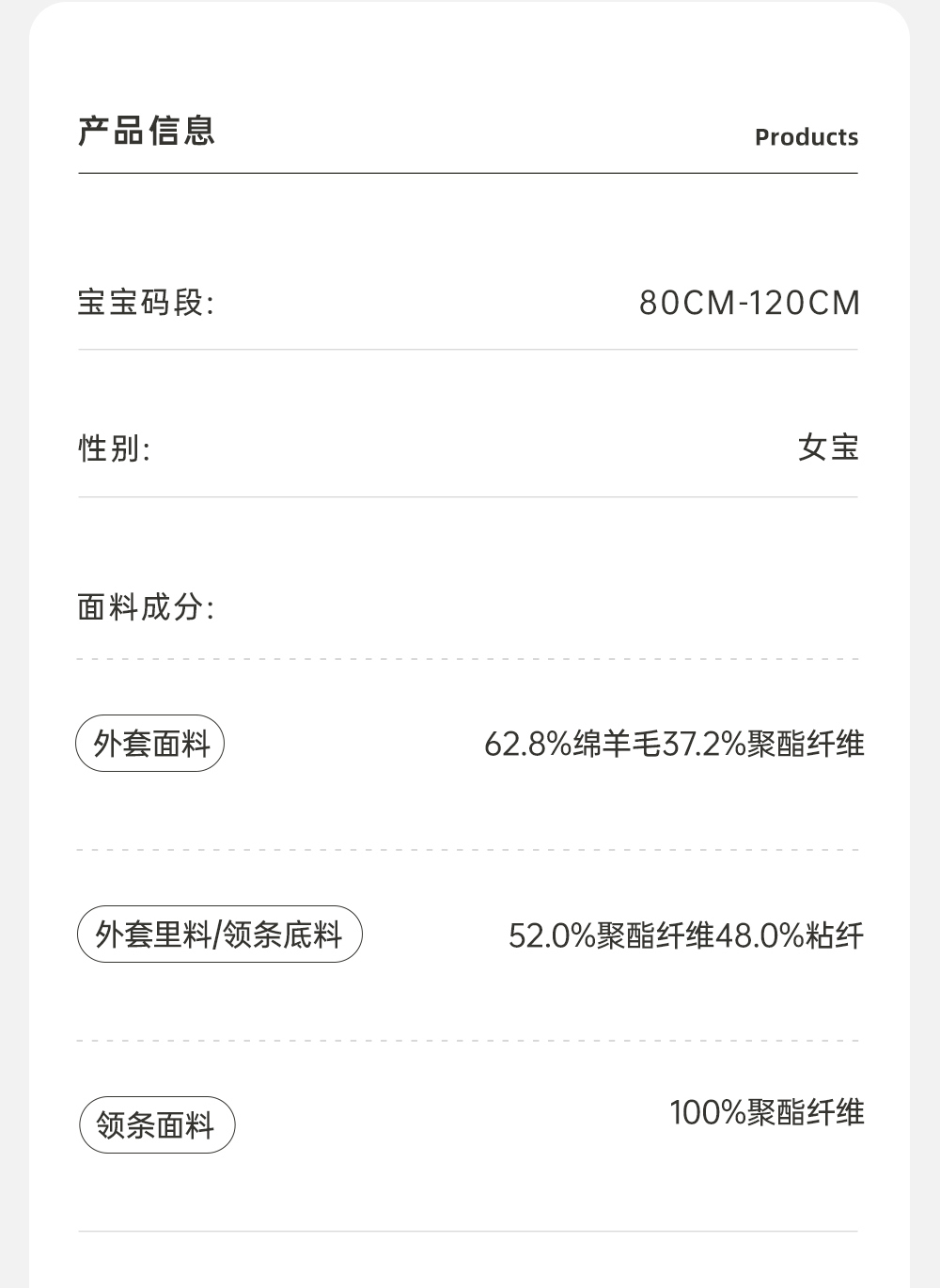 【高定系列】英氏儿童羊毛外套秋冬斗篷女童外套2024新款儿童外套