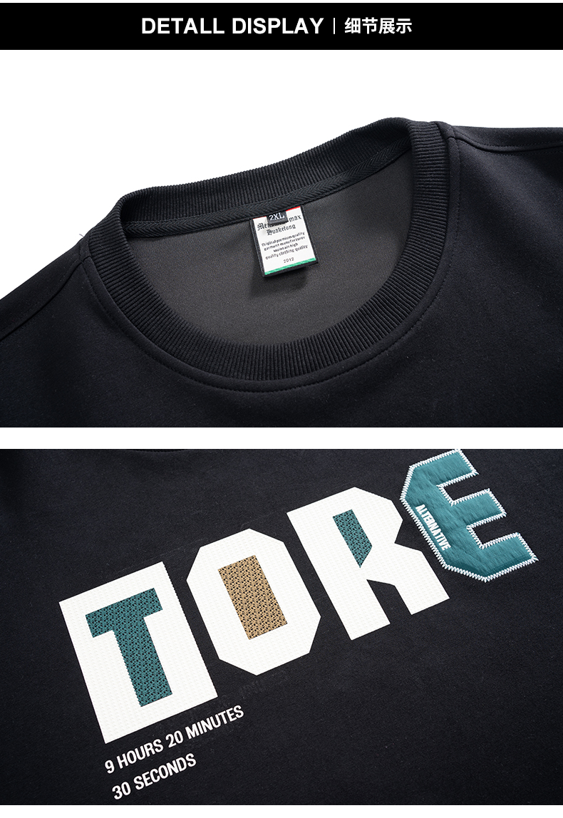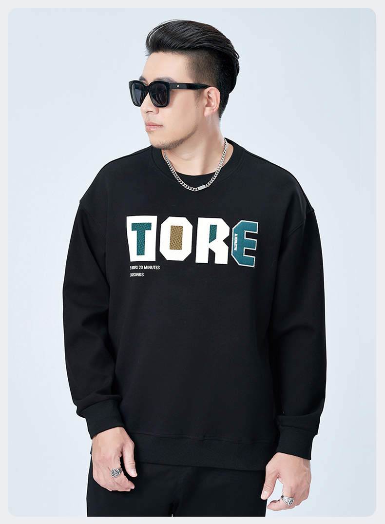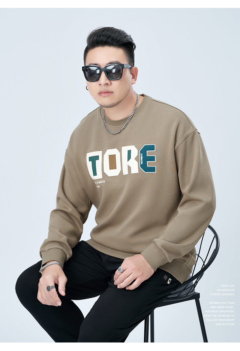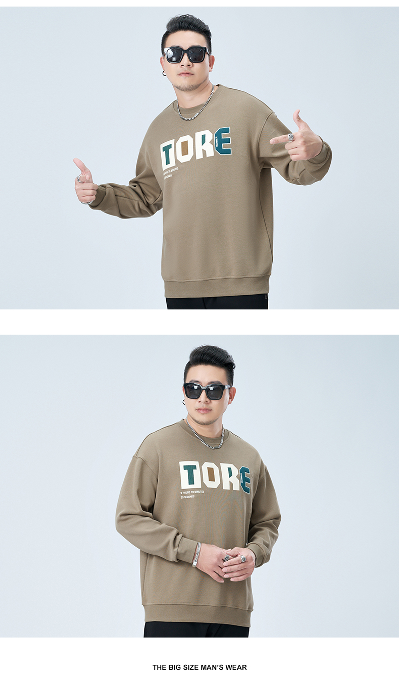【新款DMH】大依优型大码圆领印花卫衣长袖弹力加肥加大胖子上衣男士T恤肥佬打底男装