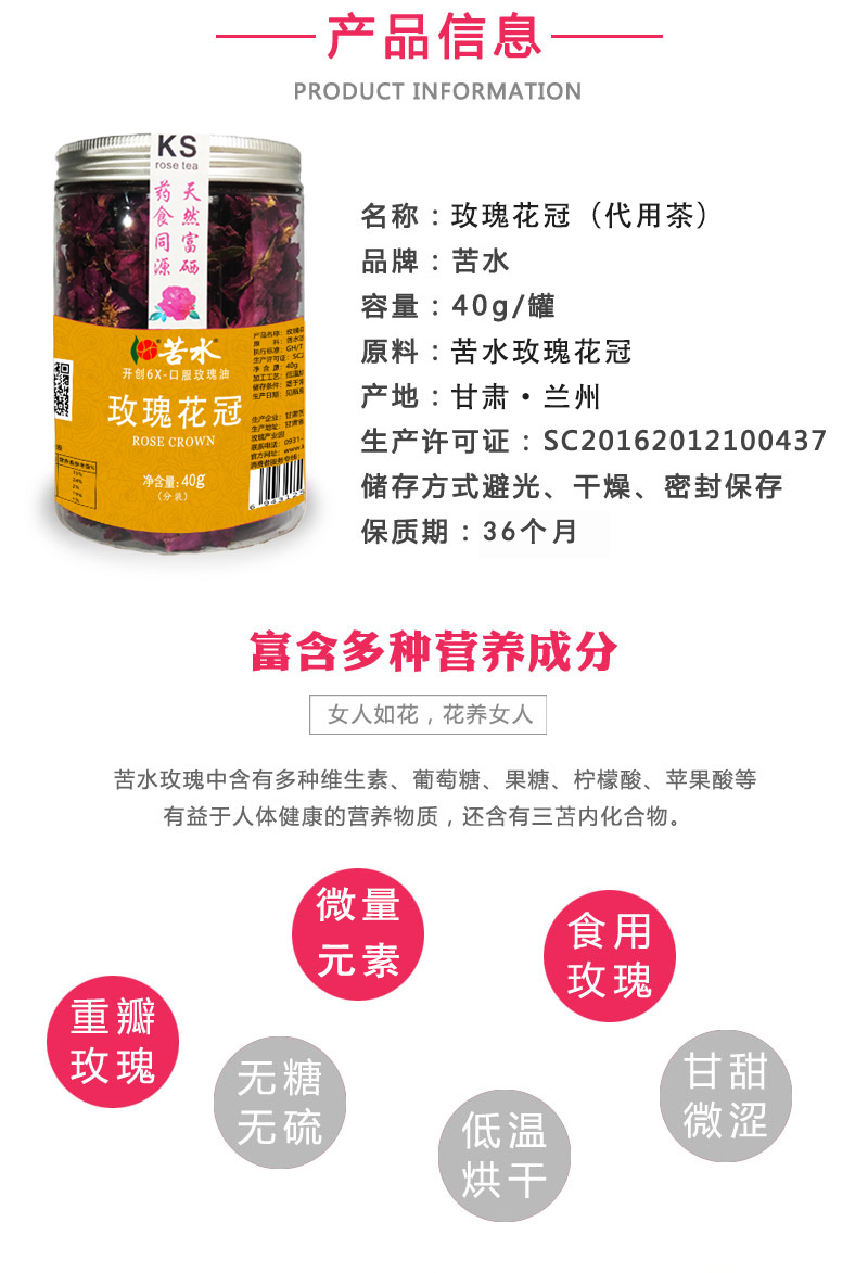 苦水牌烘干玫瑰花冠40g甘肃苦水核心产区玫瑰养生泡水花草茶