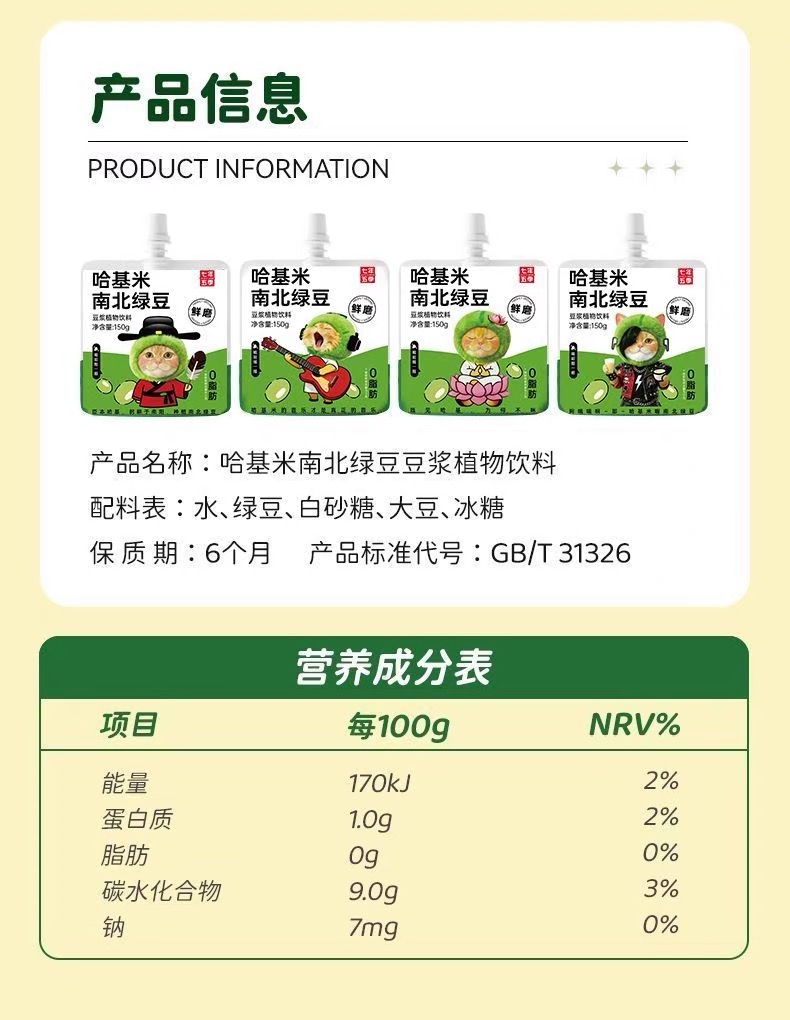 【积分兑换】哈基米南北绿豆浆 植物饮料 营养代餐