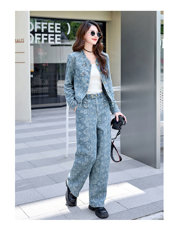 提花时髦牛仔休闲显瘦干练女神减龄两件套