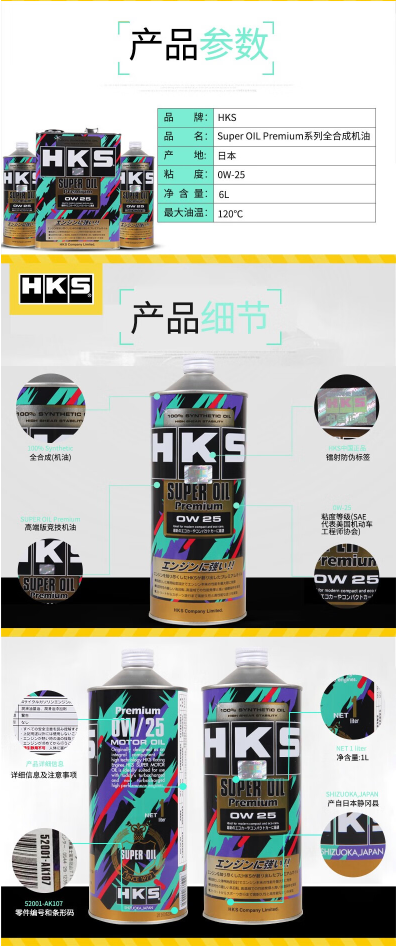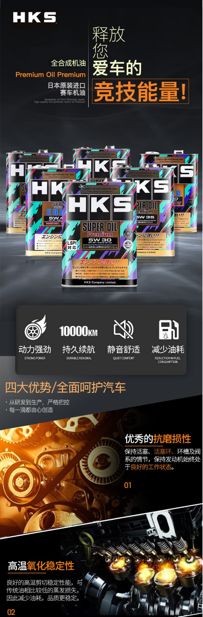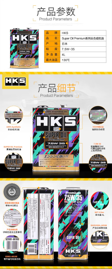 【日本进口】HKS SUPER OIL Premiun 系列全合成机油