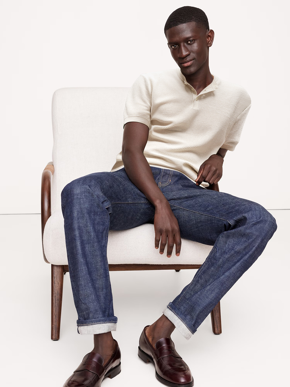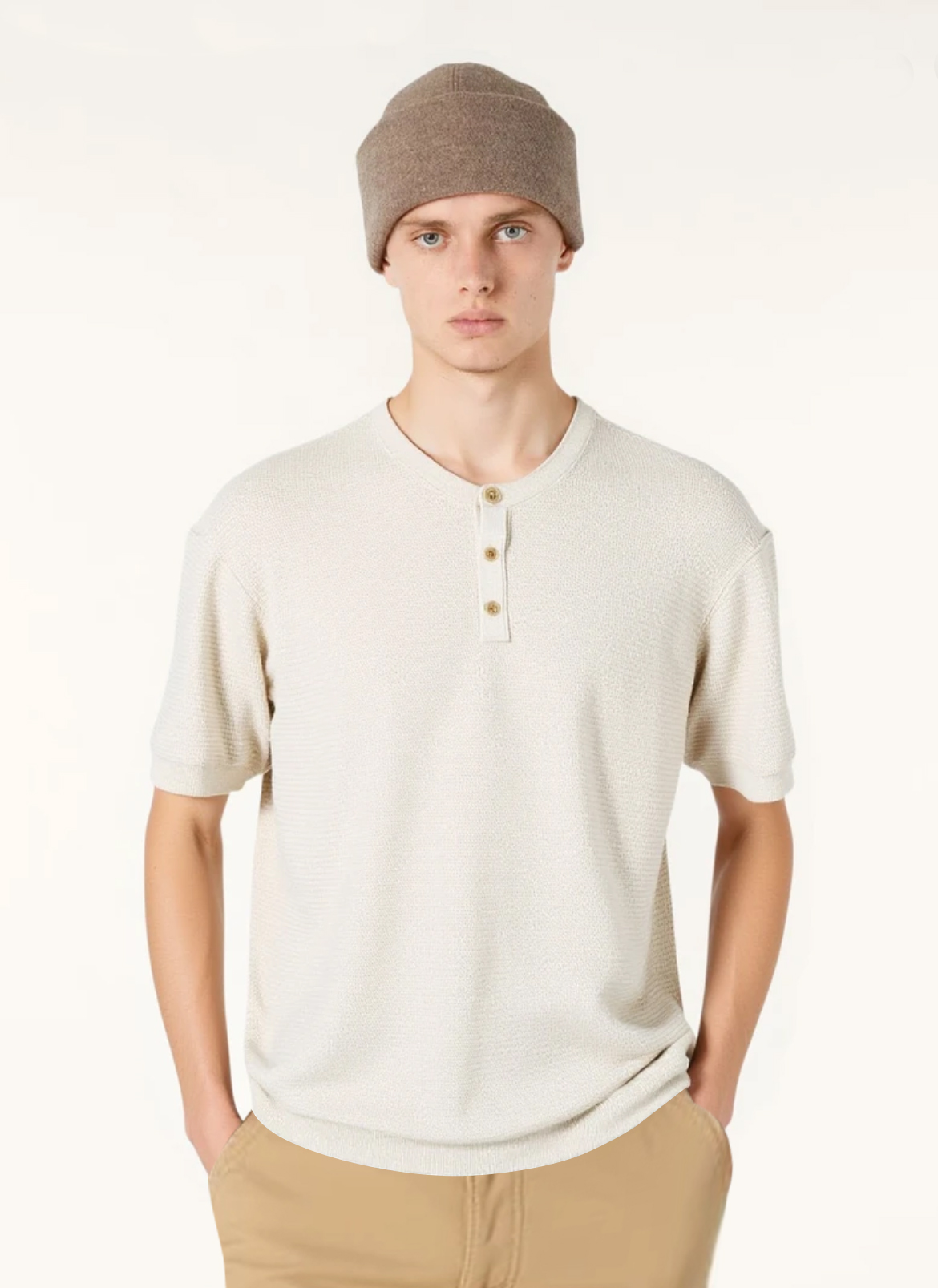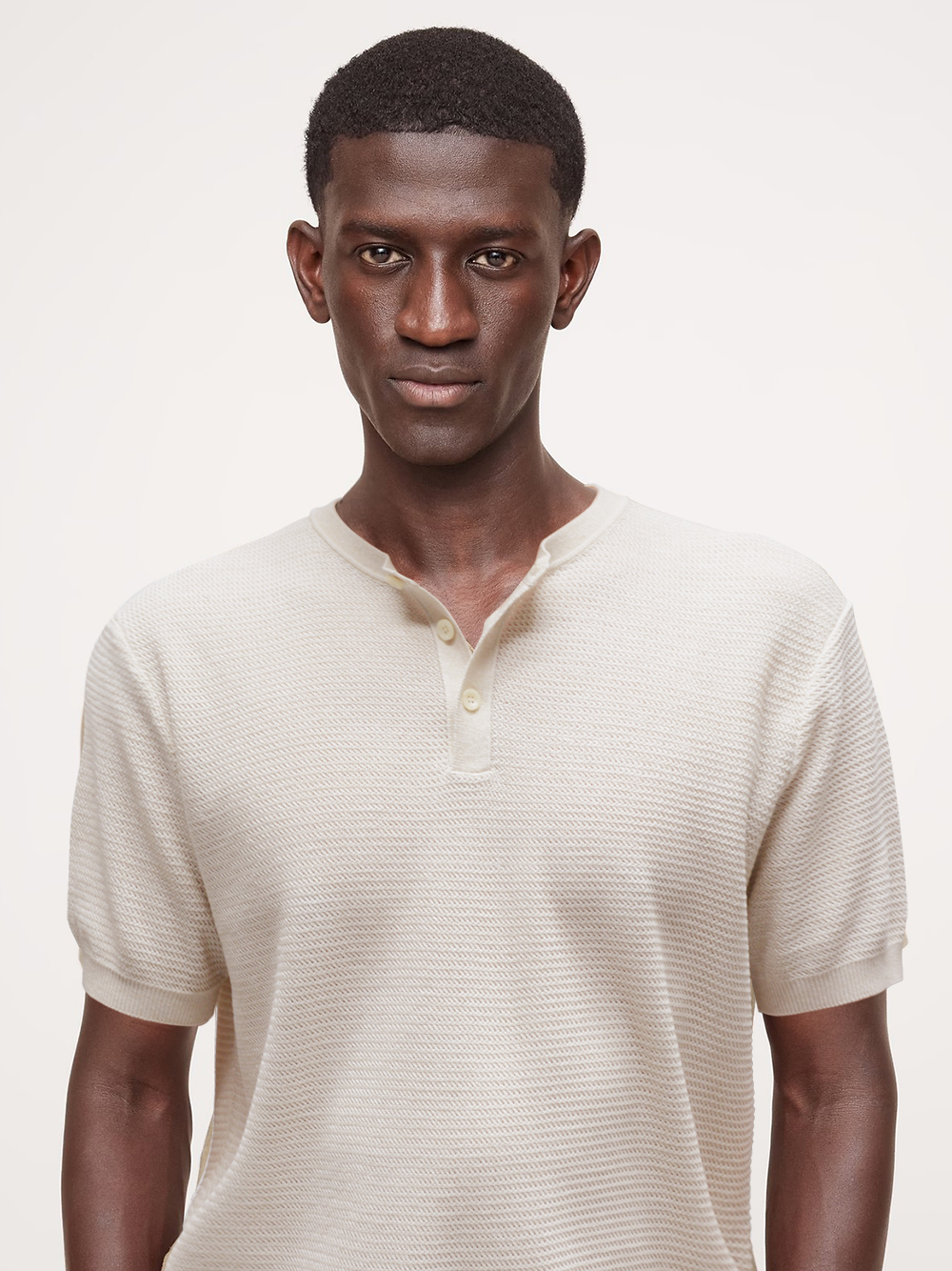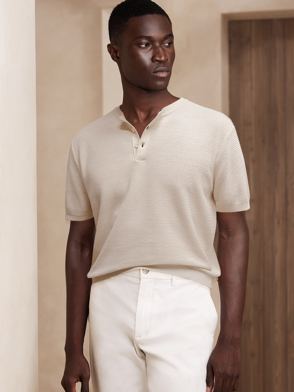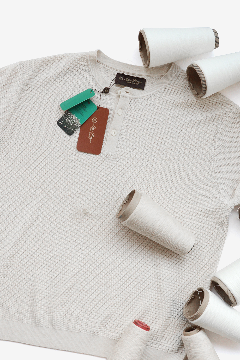 L+P家2025年新单品,亨利领亚麻提花T恤