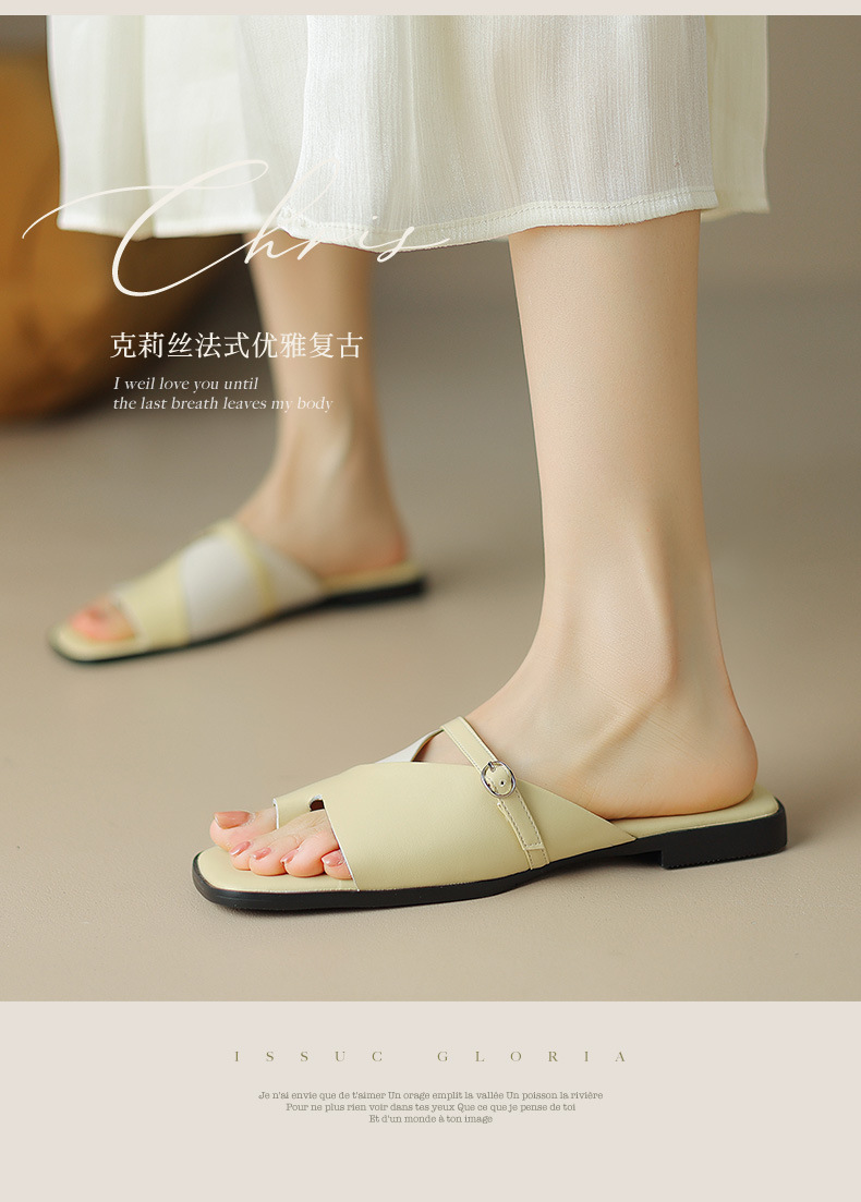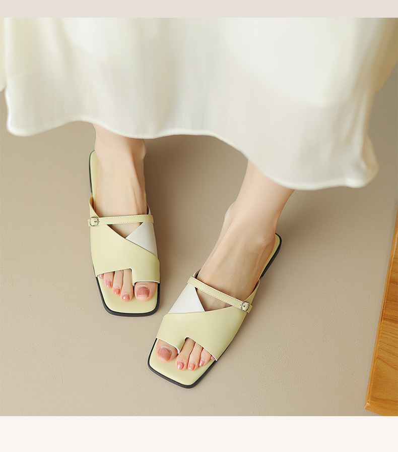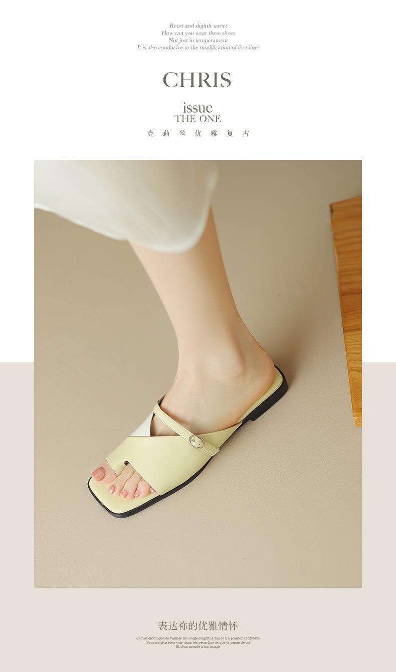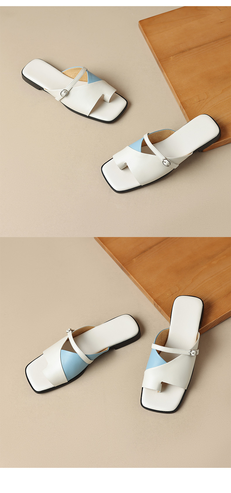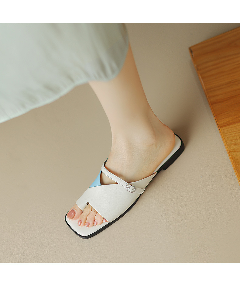 法式低跟夹趾海边沙滩拖鞋,女夏外穿新款外出平底气质套趾凉拖HBP-5352