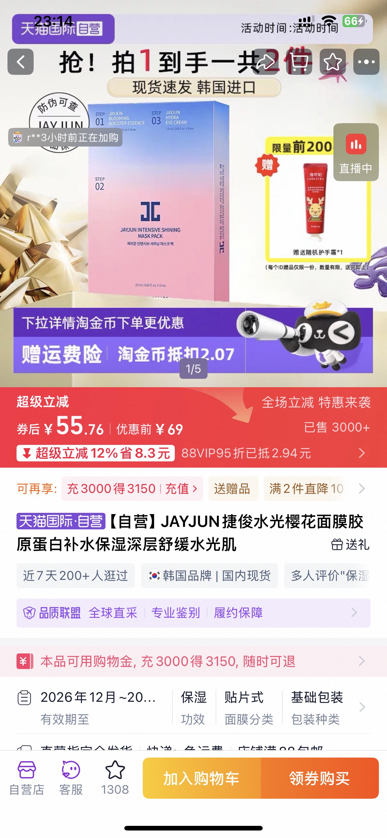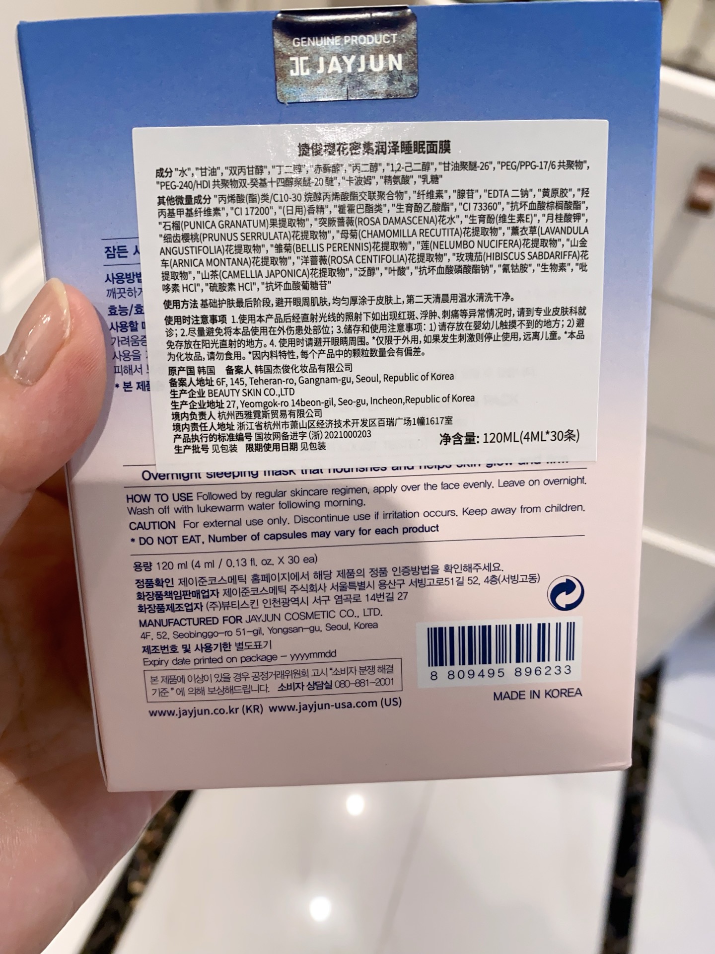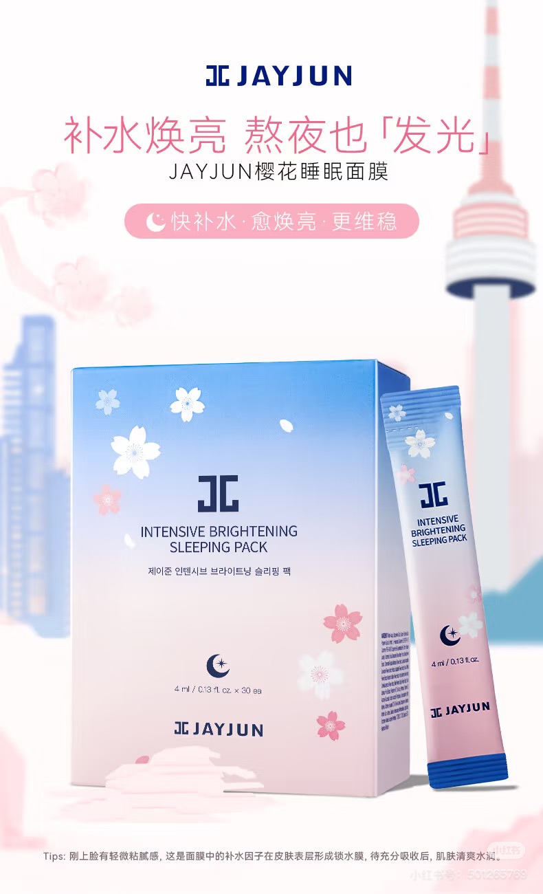 jay*jun樱花睡眠面膜清一批,10年前这牌子是贵的离谱!中标到26.1!甩卖一批!一盒30条的!代购164,!!一盒30条!3盒到手90条!一盒总容量就有120ml了!我们三盒最低这容量比兰芝还大,比兰芝还便宜啊!里面有樱花颗粒!。美白提亮肤色、补水保湿!果冻一样的睡眠面膜,第二天皮肤提亮很多!吸收很好,不粘枕头!钱花的最值得一次!90条最低!韩国原装进口!客户问我好用吗?毕竟这牌子10年前代购们都抢的头破血流的!早起会被自己惊艳到,肤感很好,懒鬼必用!皮肤周期营养还是得靠面膜支撑!嫌贴片面膜太冷,水洗面膜又太麻烦,懒鬼就必须买睡眠面膜啊!面膜总还是要用的,形式不同而已!一盒30条!这价格当手膜都值啊!白天上班魂都没了,晚上不熬到两三点根本舍不得睡的必入!拯救熬夜脸!熬最深的夜 敷最“贵”的面膜 毕竟这牌子10年前也炒到100多一盒的!你想想看那时候的物价100多啥概念!