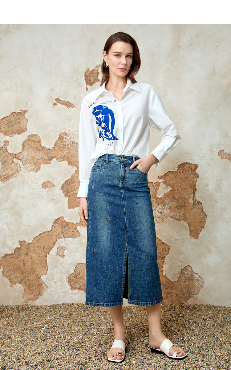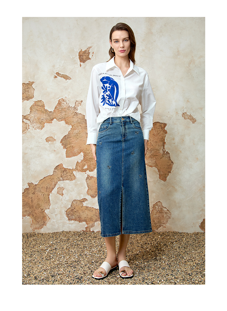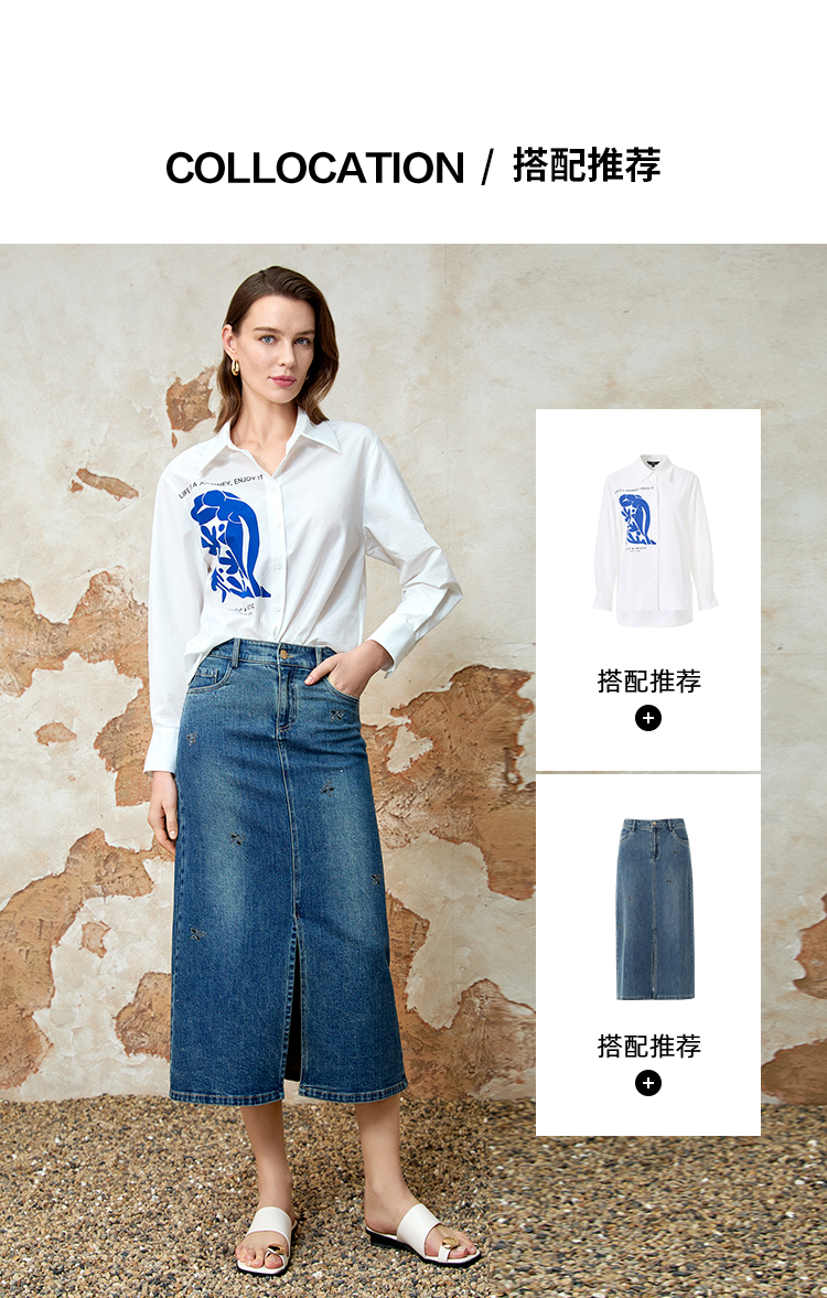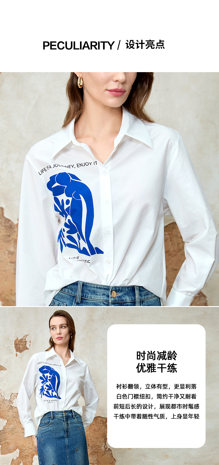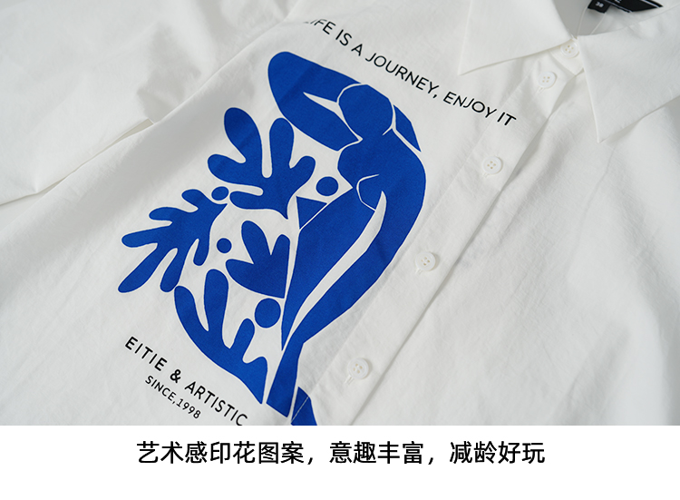 EITIE爱特爱气质通勤印花干练直筒衬衫上衣春新款8109803