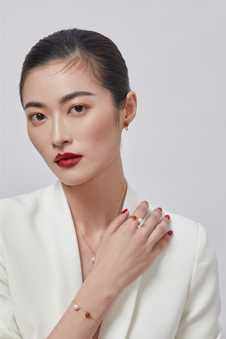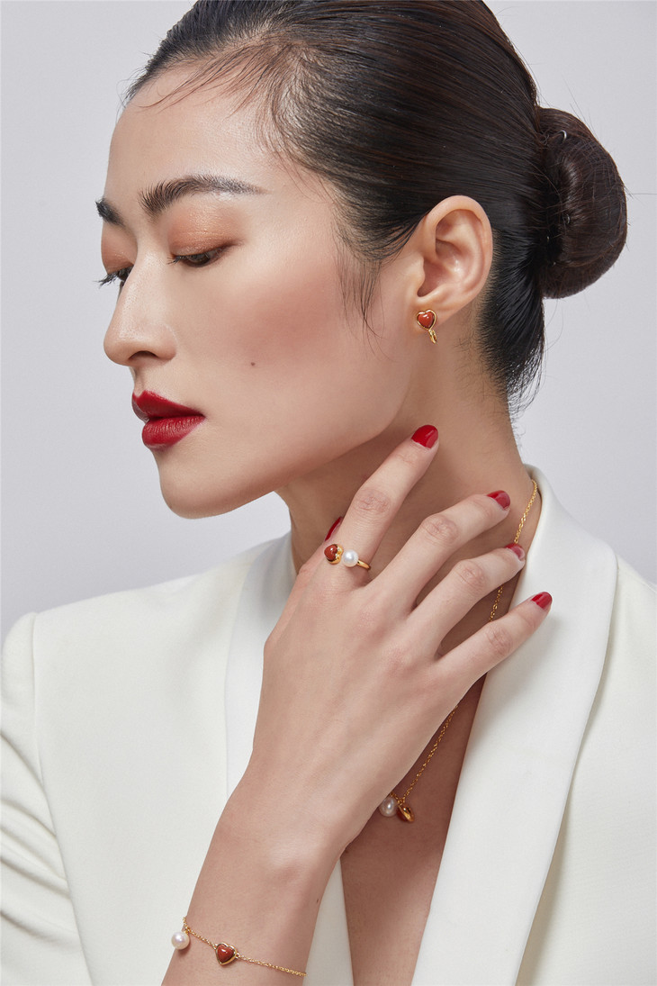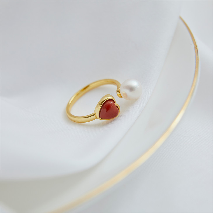 Pearl moments 珠玉系列 南红小心心珍珠戒指