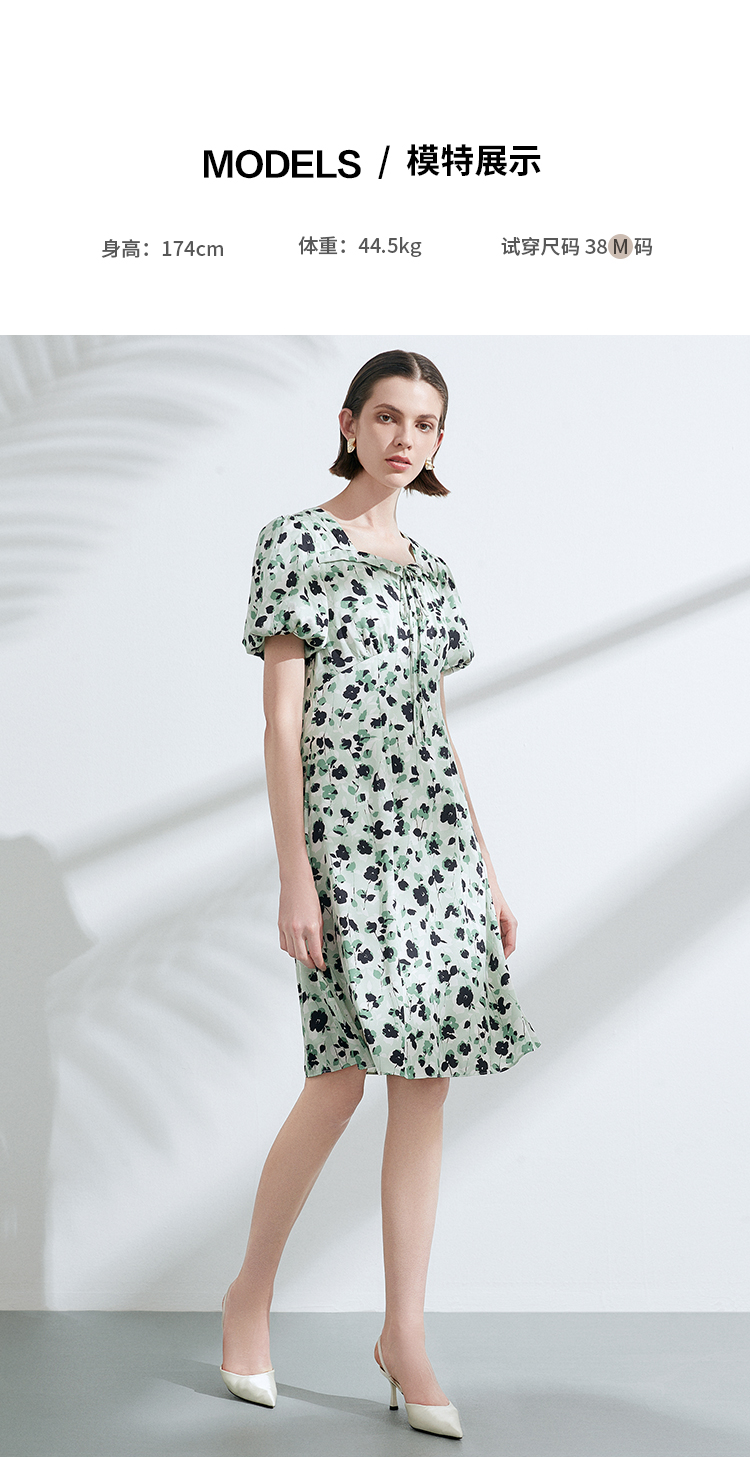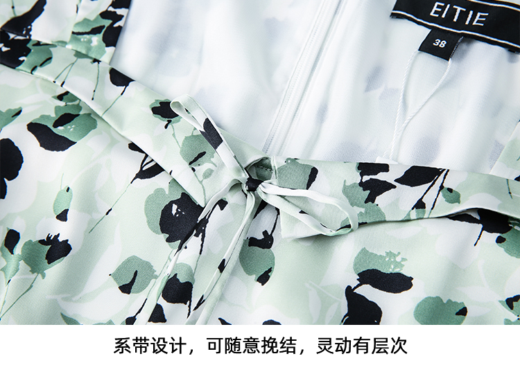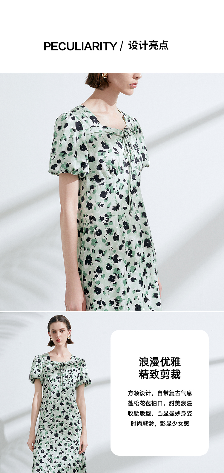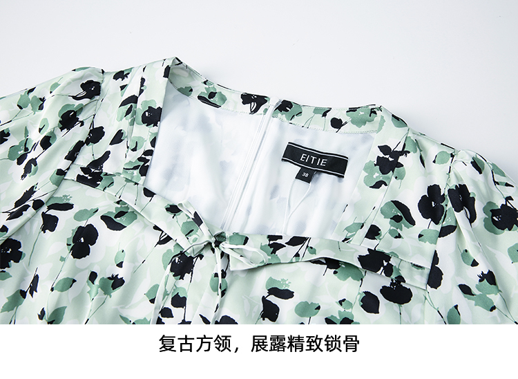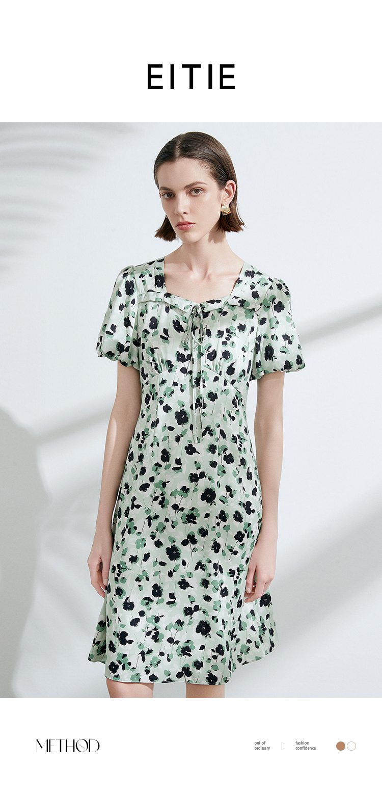 EITIE爱特爱夏季新款泡泡袖收腰温柔桃心领显瘦通勤连衣裙7807530