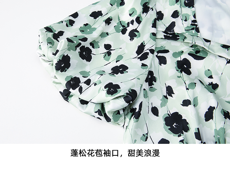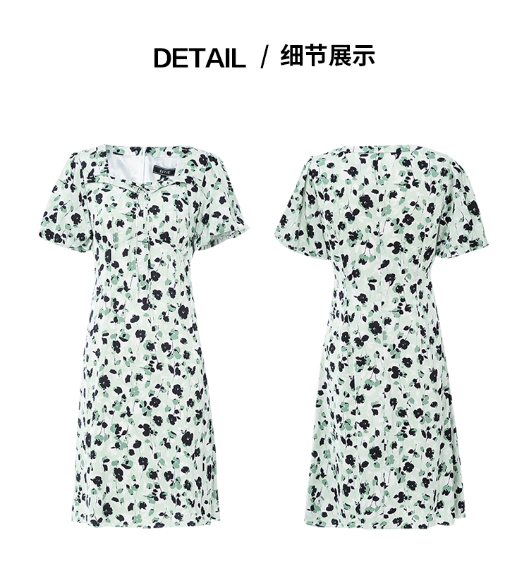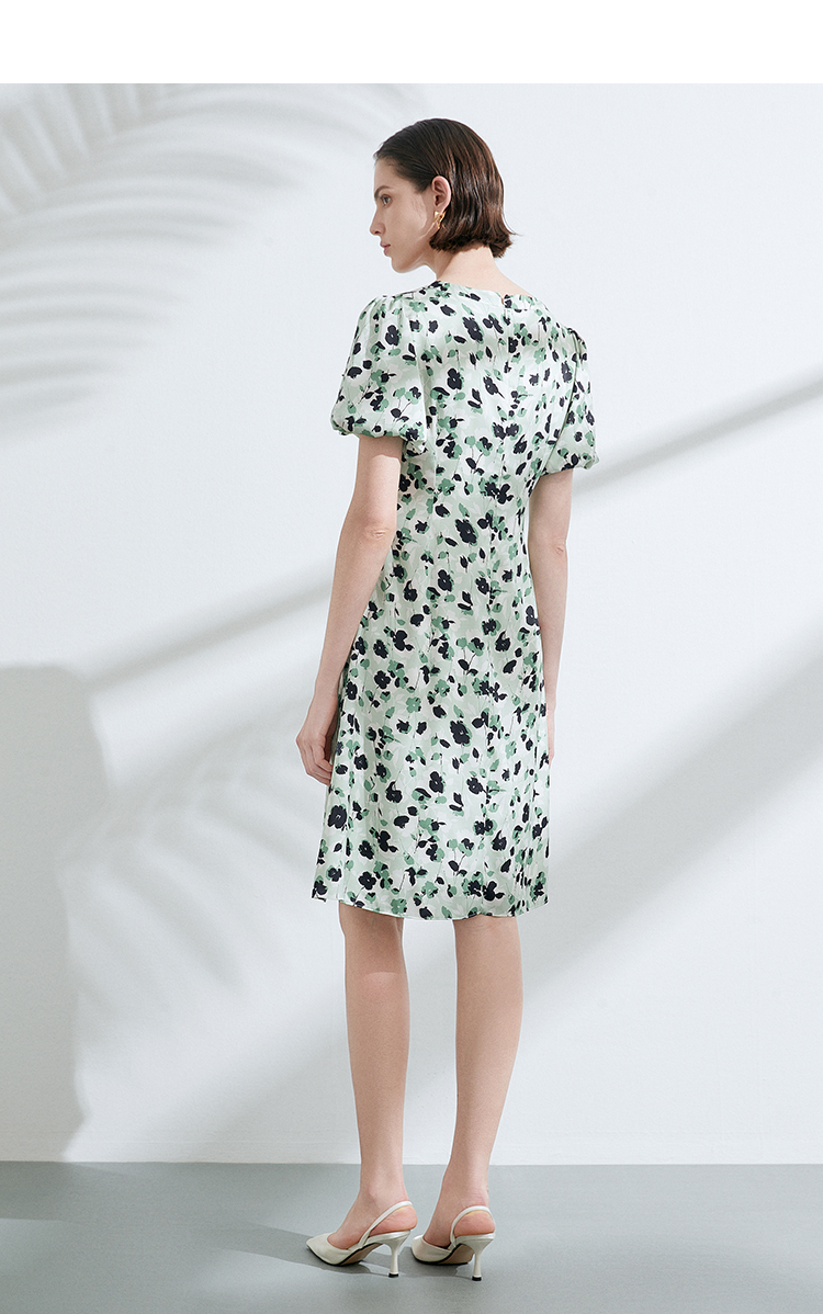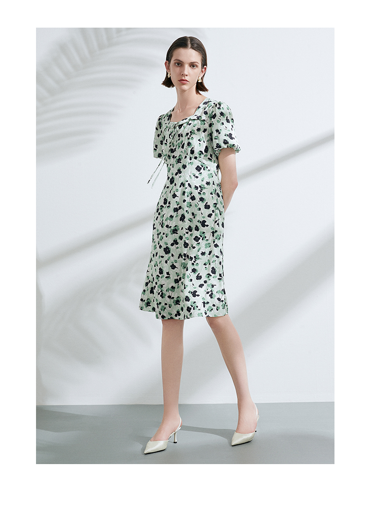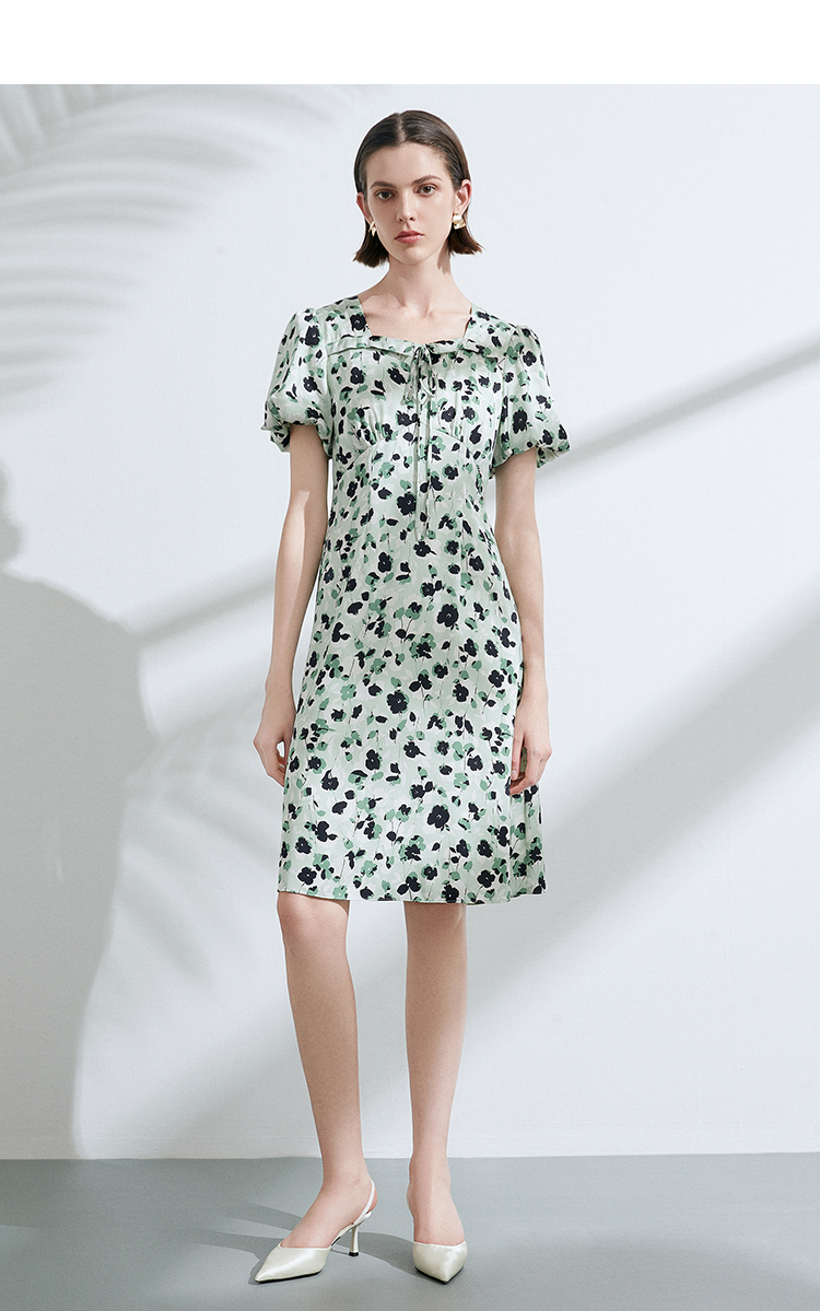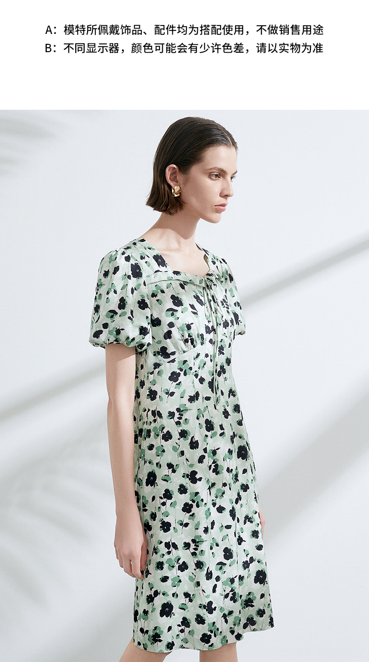 EITIE爱特爱夏季新款泡泡袖收腰温柔桃心领显瘦通勤连衣裙7807530