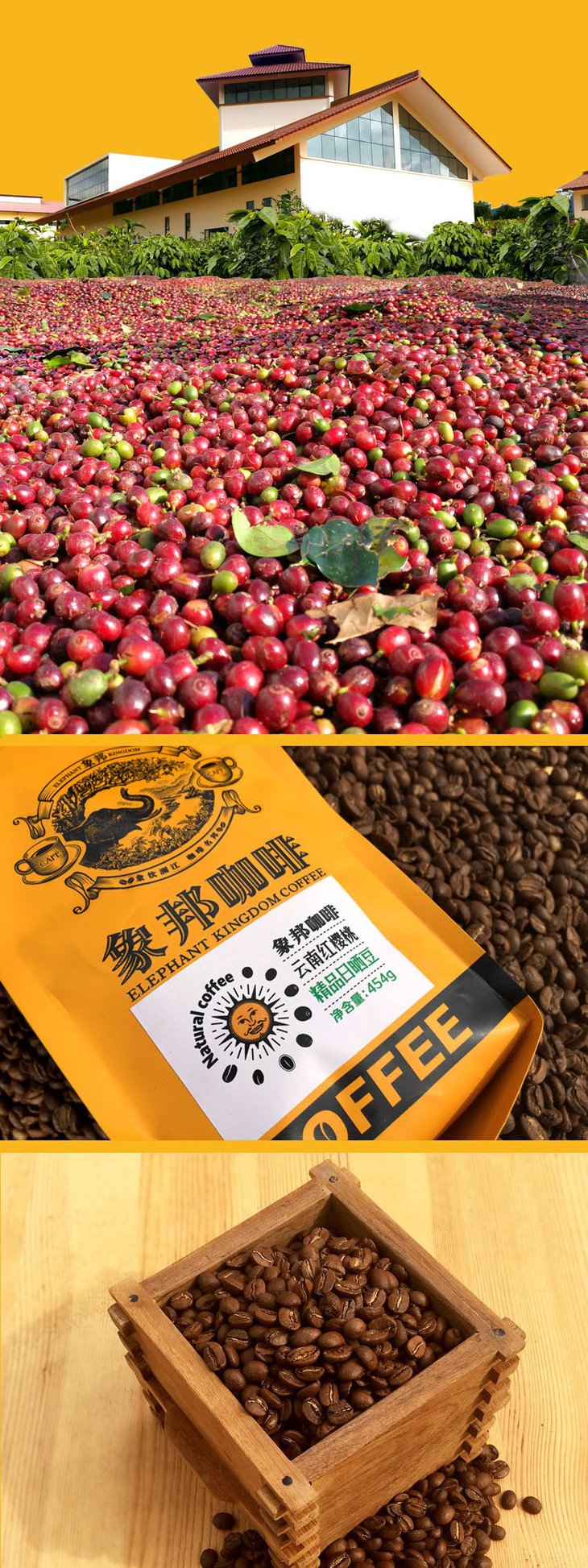 象邦咖啡豆云南小粒咖啡日晒豆颗粒匀称滋味明亮454g(磨粉请备注)