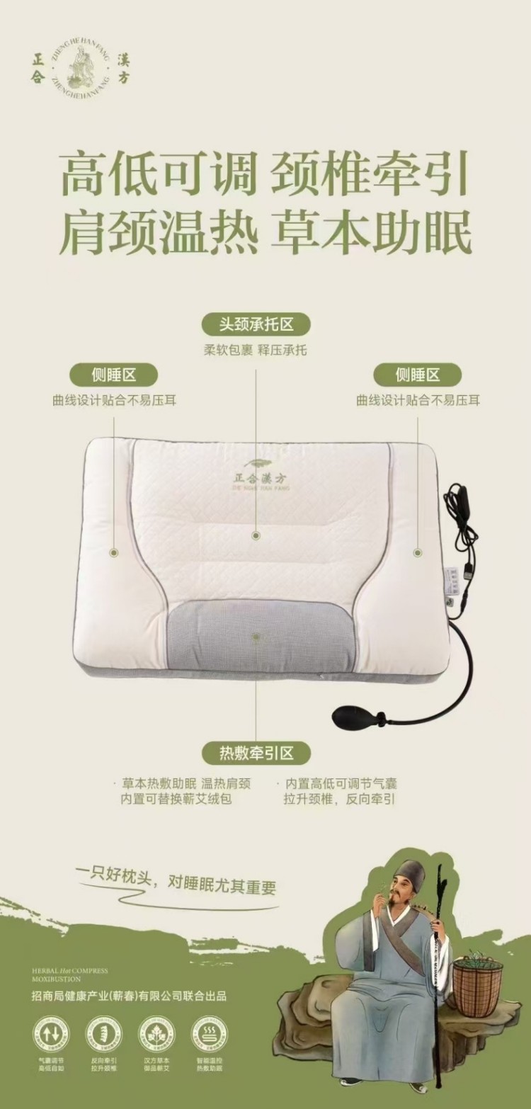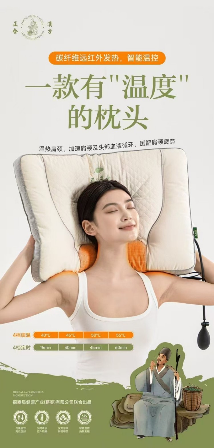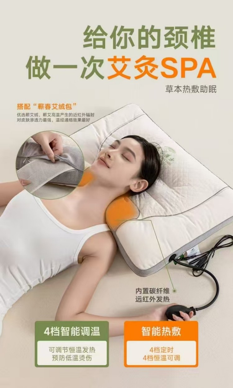 【汉方棉麻面料 天然环保吸湿透气】正和汉方 艾能热敷牵引枕 4档智能调温 缓解肩颈疲劳