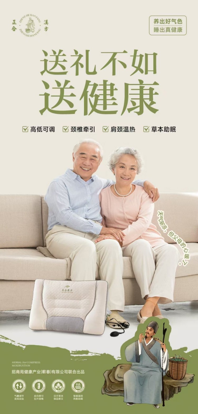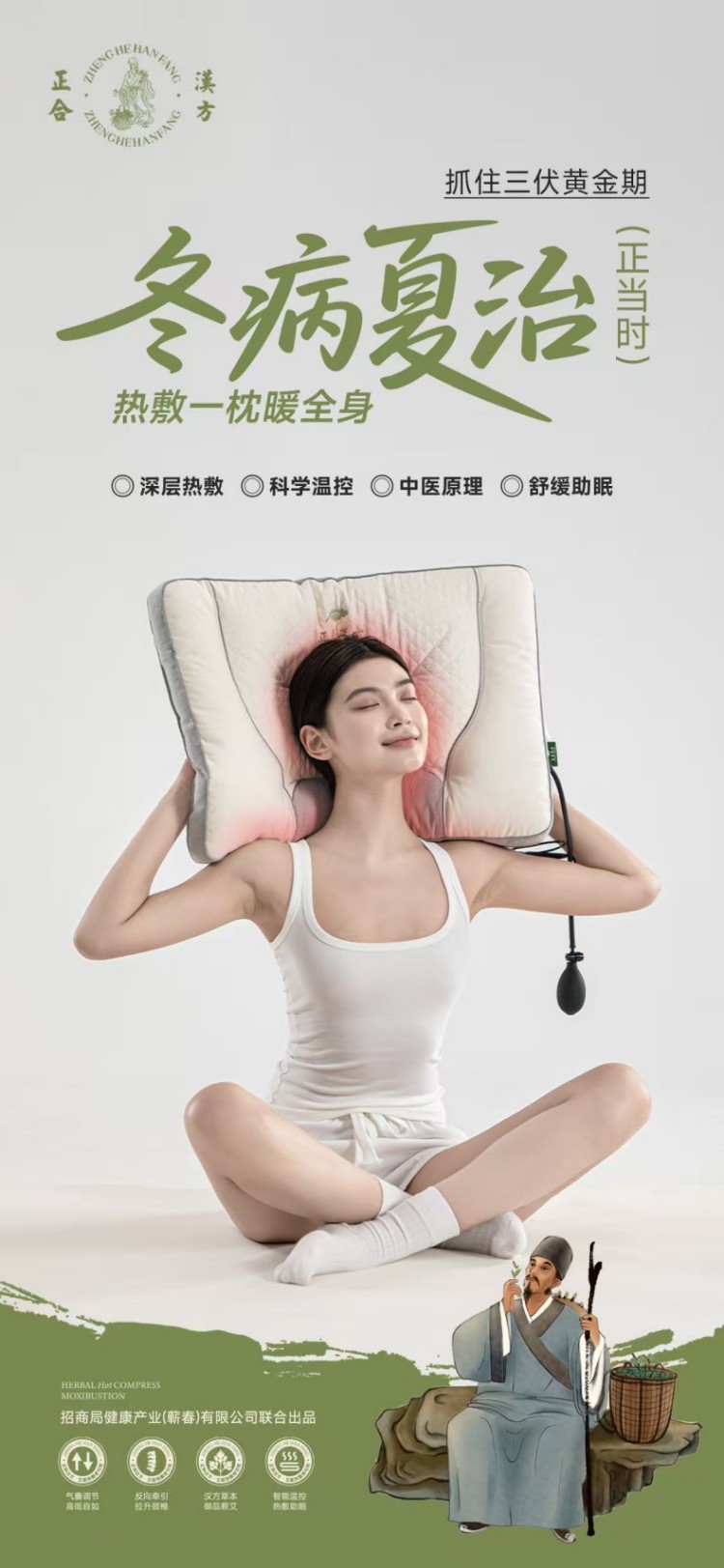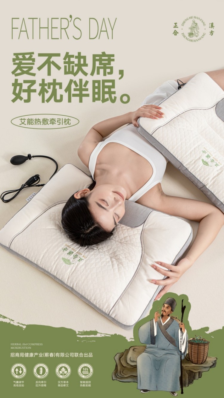 【汉方棉麻面料 天然环保吸湿透气】正和汉方 艾能热敷牵引枕 4档智能调温 缓解肩颈疲劳