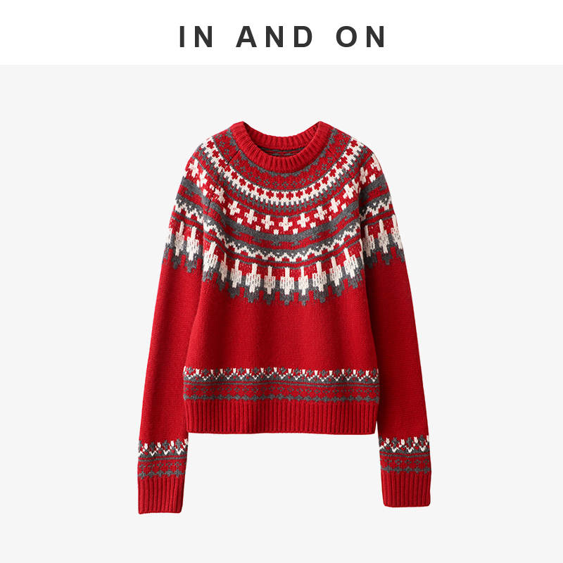 IN AND ON 冬日暖阳 100%绵羊毛费尔岛圆领加厚毛衣 55010
