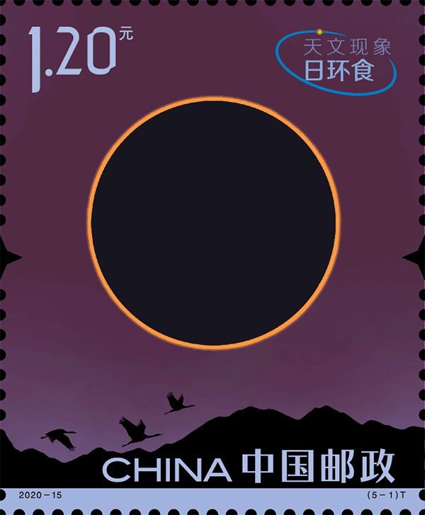 中国邮政于2020年6月21日发行《天文现象》特种邮票1套5枚,发行量830万套。