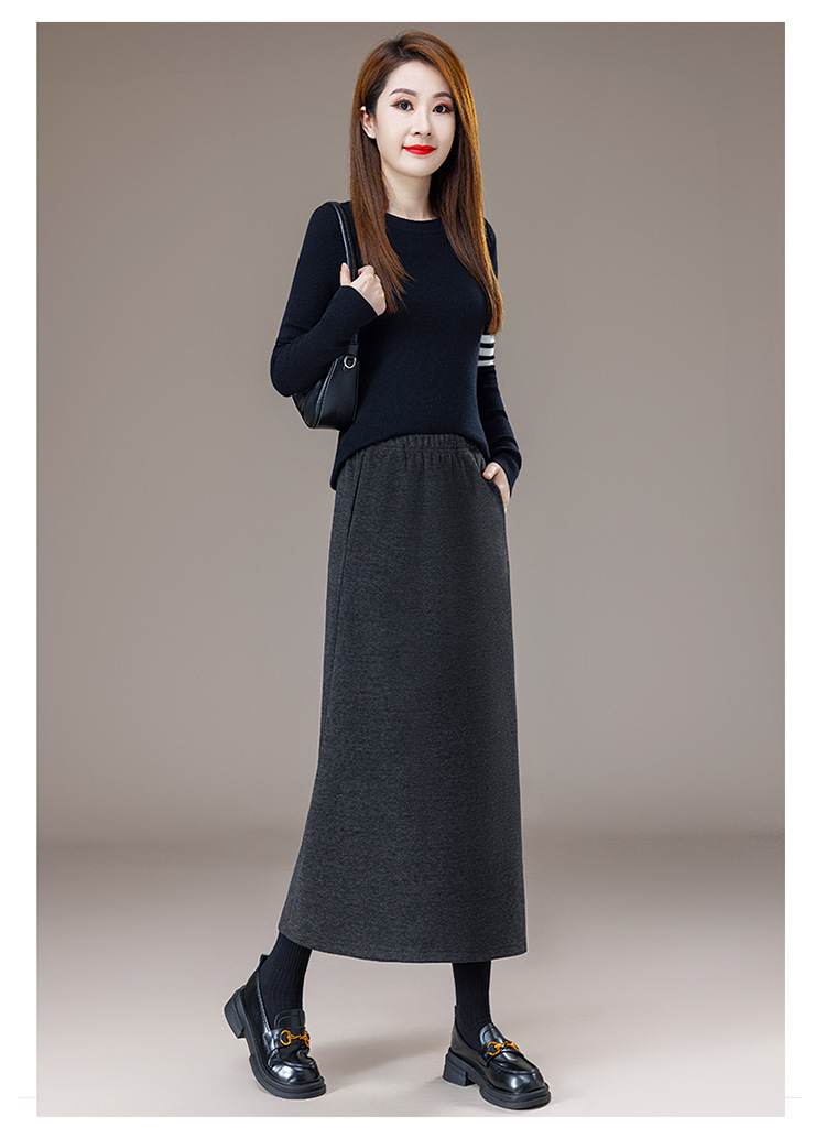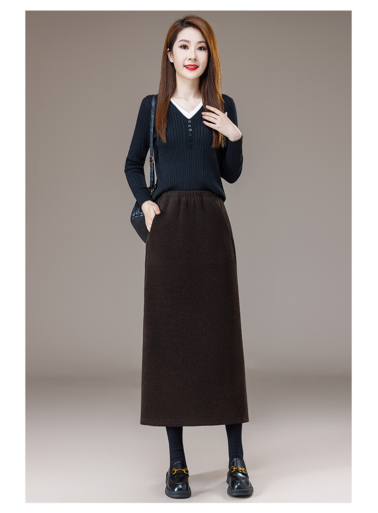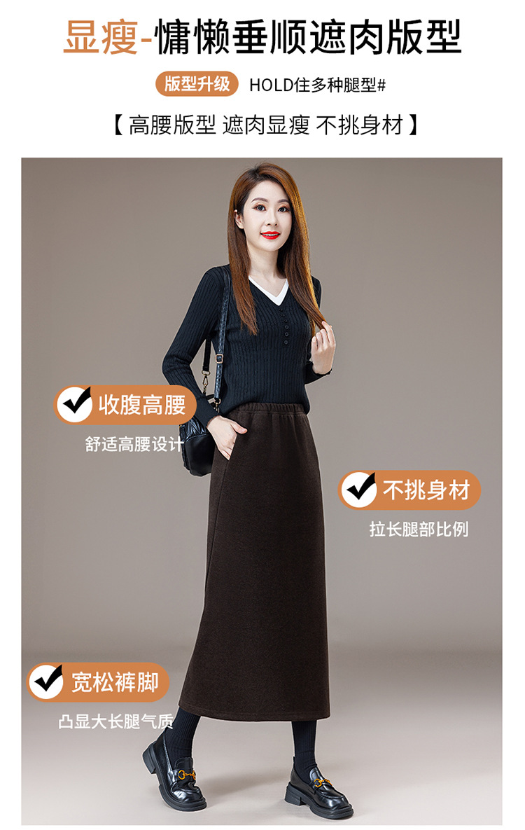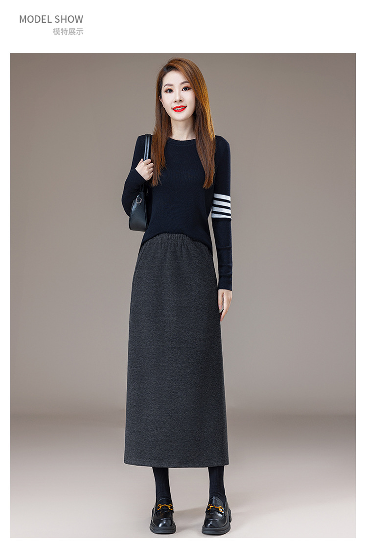 YM 85103-63时尚优雅中长款毛呢直筒裙气质高腰遮肚显瘦裙 商品图4