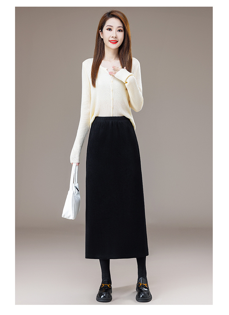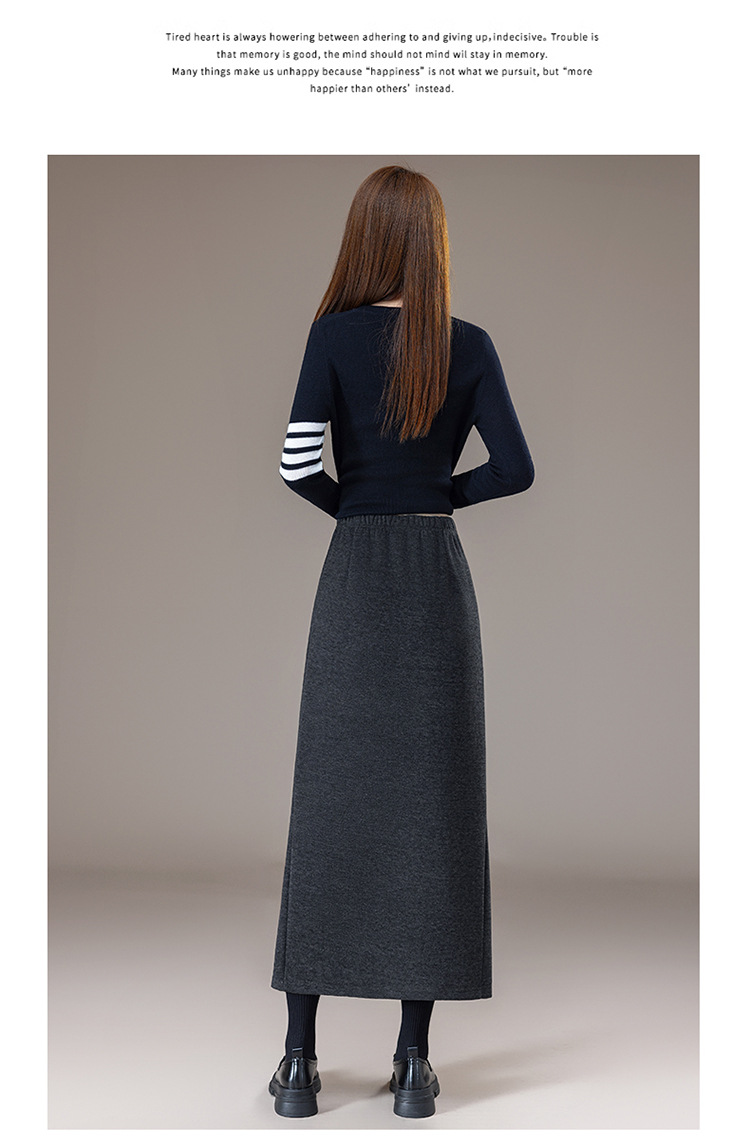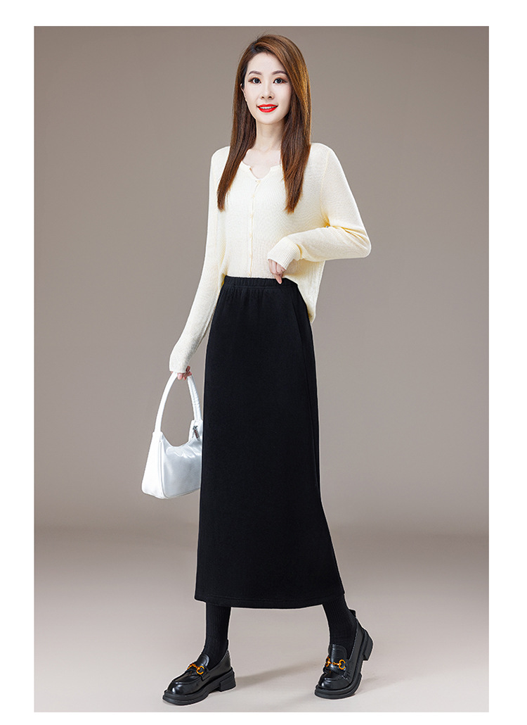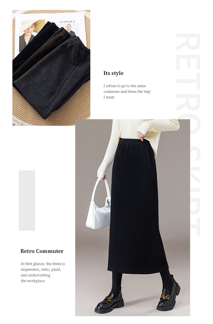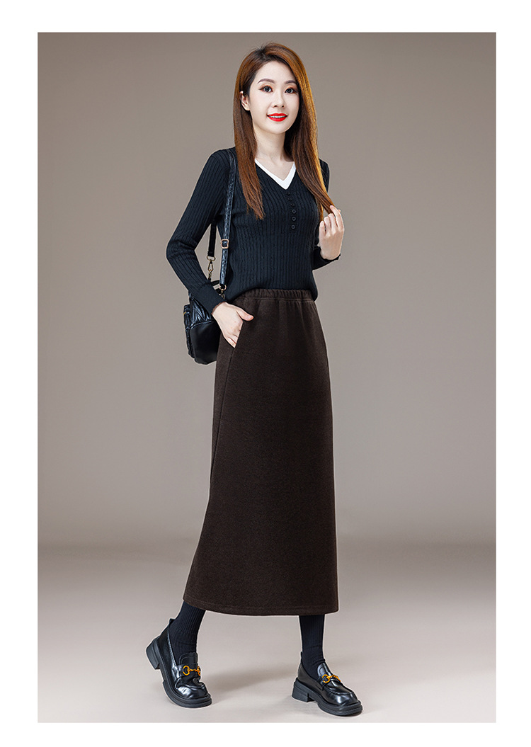 YM 85103-63时尚优雅中长款毛呢直筒裙气质高腰遮肚显瘦裙 商品图4