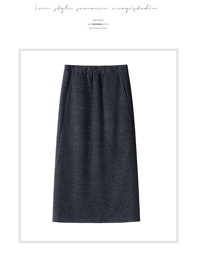YM 85103-63时尚优雅中长款毛呢直筒裙气质高腰遮肚显瘦裙