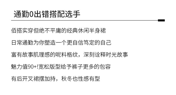 YM 85103-63时尚优雅中长款毛呢直筒裙气质高腰遮肚显瘦裙 商品图2