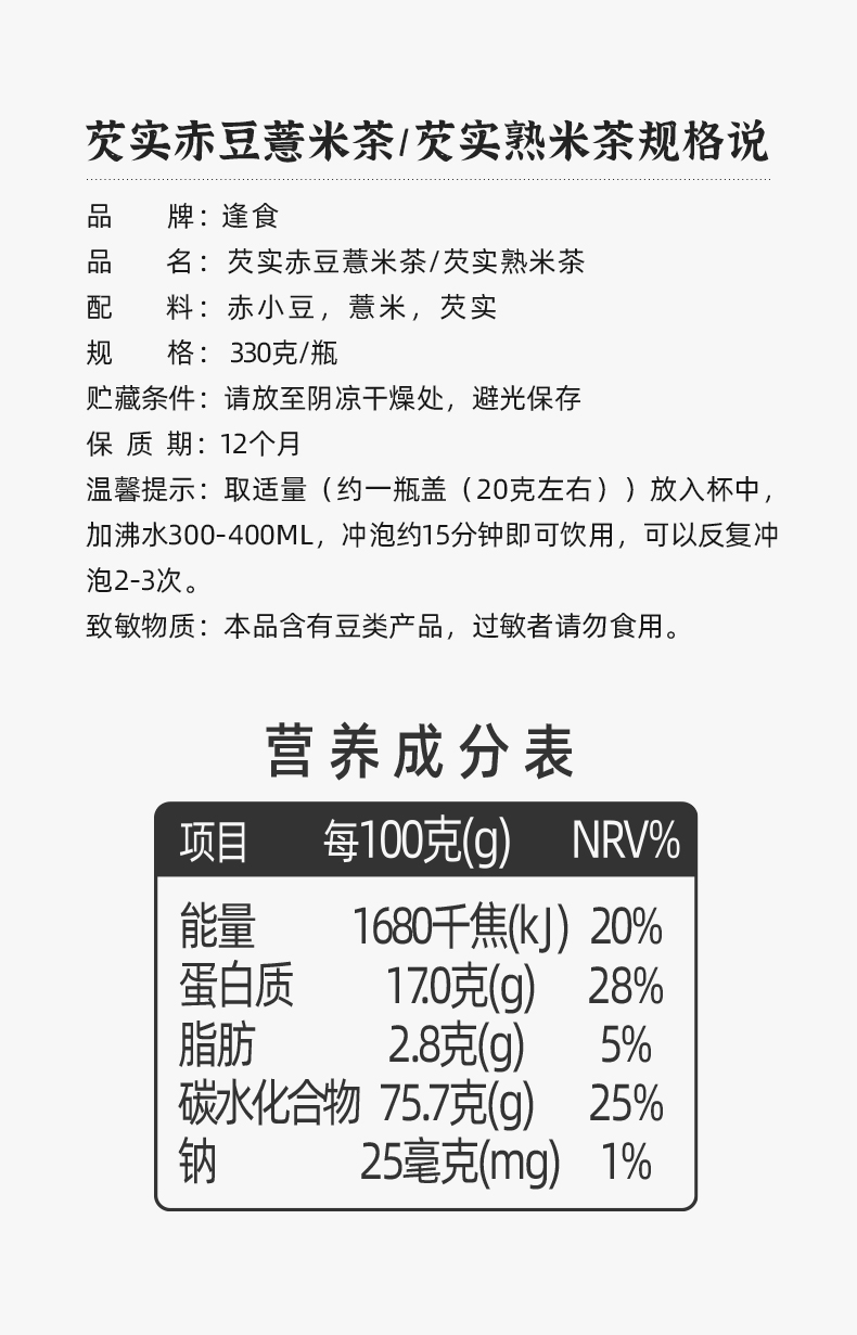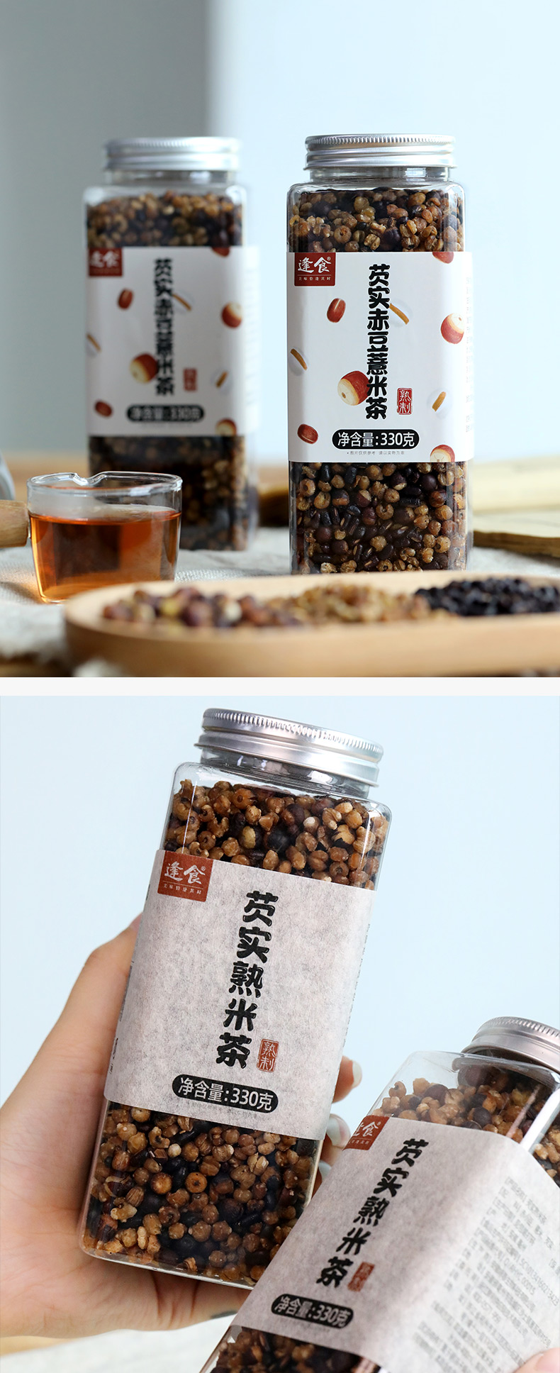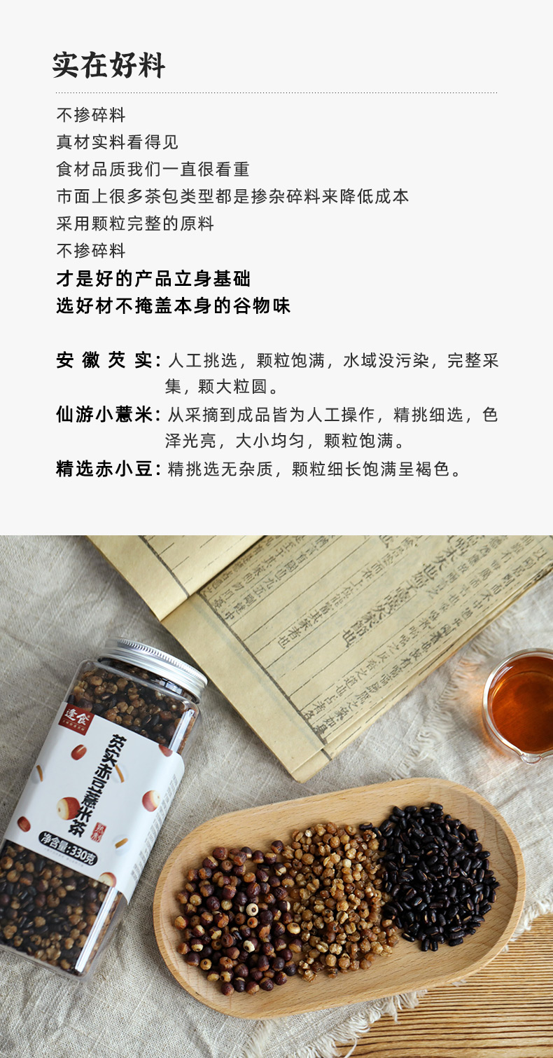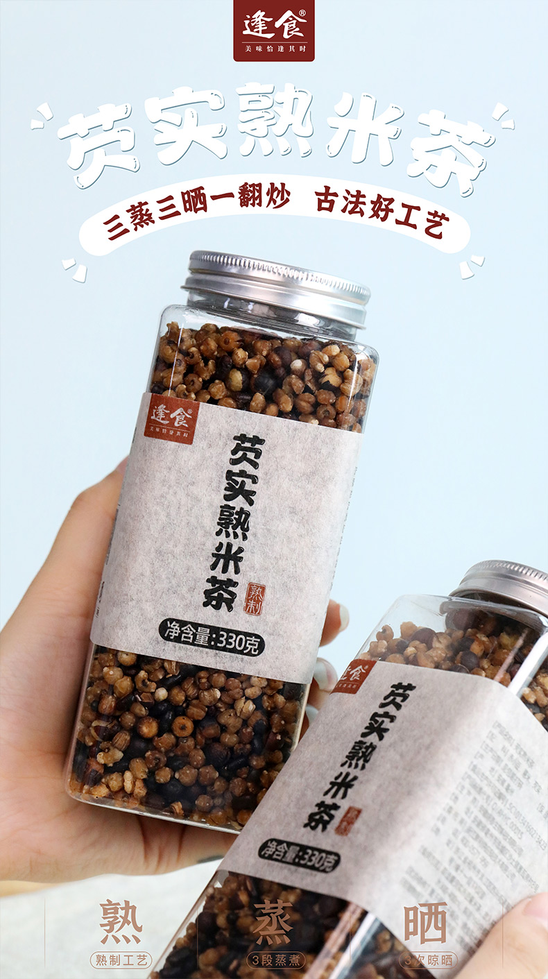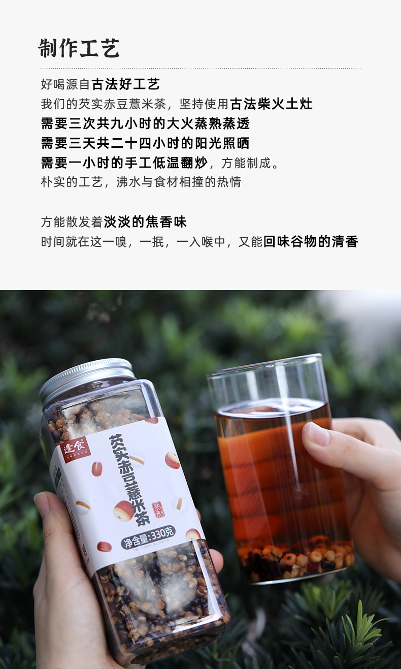 逢食芡实赤豆薏米茶 330g/瓶 古法柴火土灶 三蒸三晒一翻炒 干嚼都很香