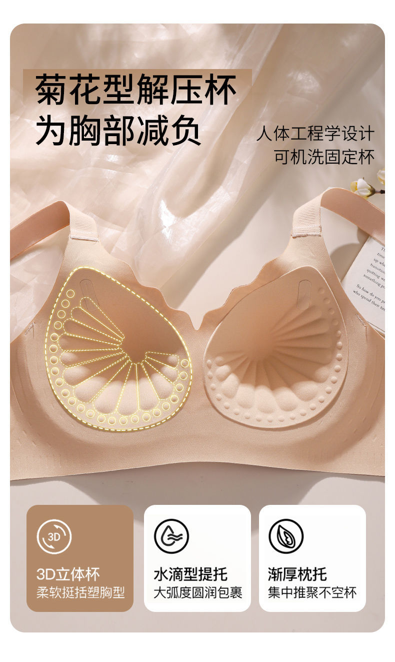 【软支撑果冻条聚拢❗️胸越垂越好穿】普拉提黑绷带二代升级固定一体杯文胸薄杯无痕无钢圈聚拢内衣。ja
