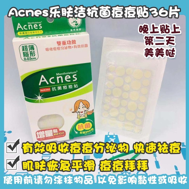Acnes樂膚潔抗菌痘痘貼36片👍还在为长痘痘而苦恼吗❓不用担心,神器来啦~这款痘痘贴大小可以根据自身情况选择,还附有便利夹,方便又卫生💯有效吸收痘痘分泌物,快速祛痘🤙晚上贴上,第二天就又可以美美哒💃肌肤恢复平滑,痘痘拜拜,防护力和修护力UP⬆温馨提示:使用前请勿涂抹物品,以免影响黏性或吸收