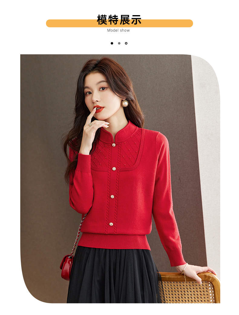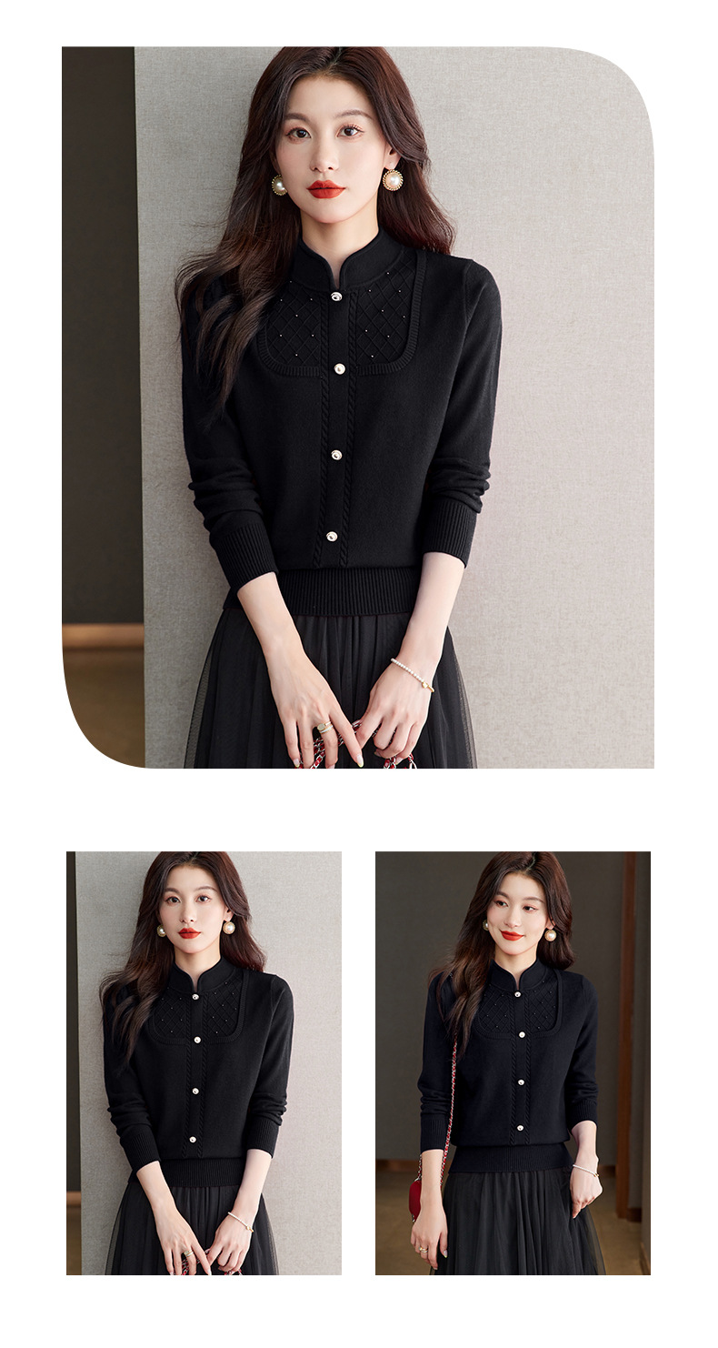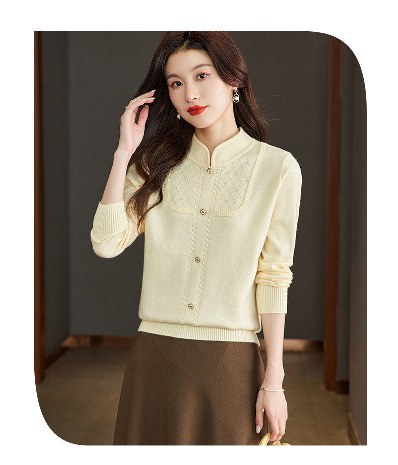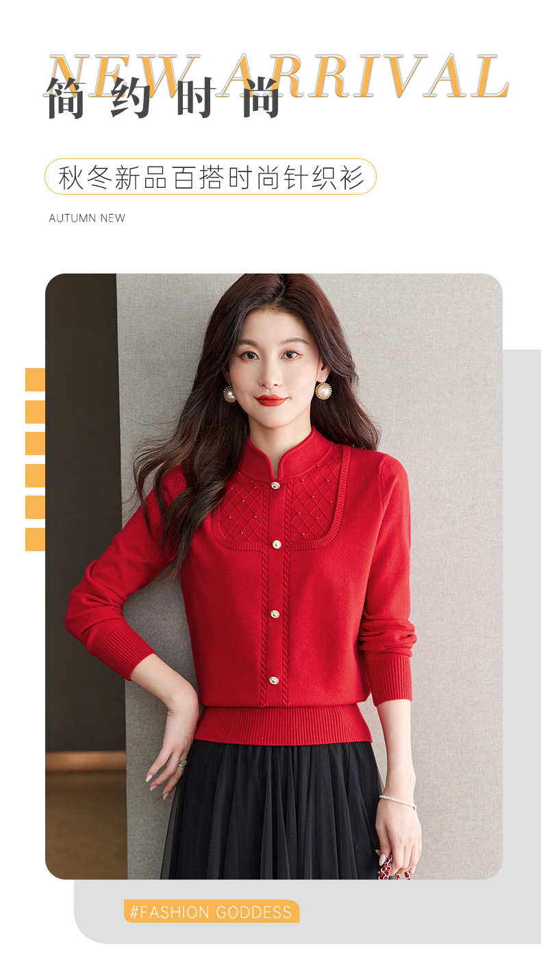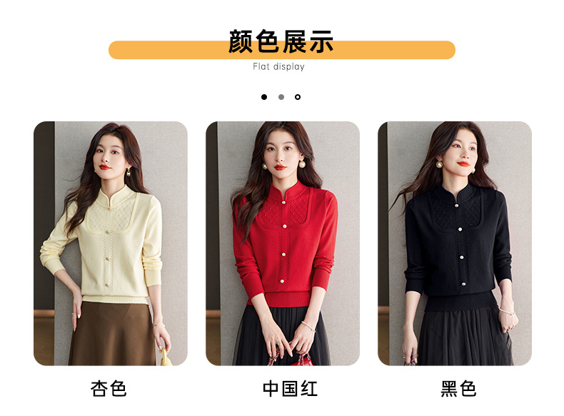 CC-66-5845新中式国风假两件针织衫上衣女新款设计感时尚立领打底衫修身毛衣
