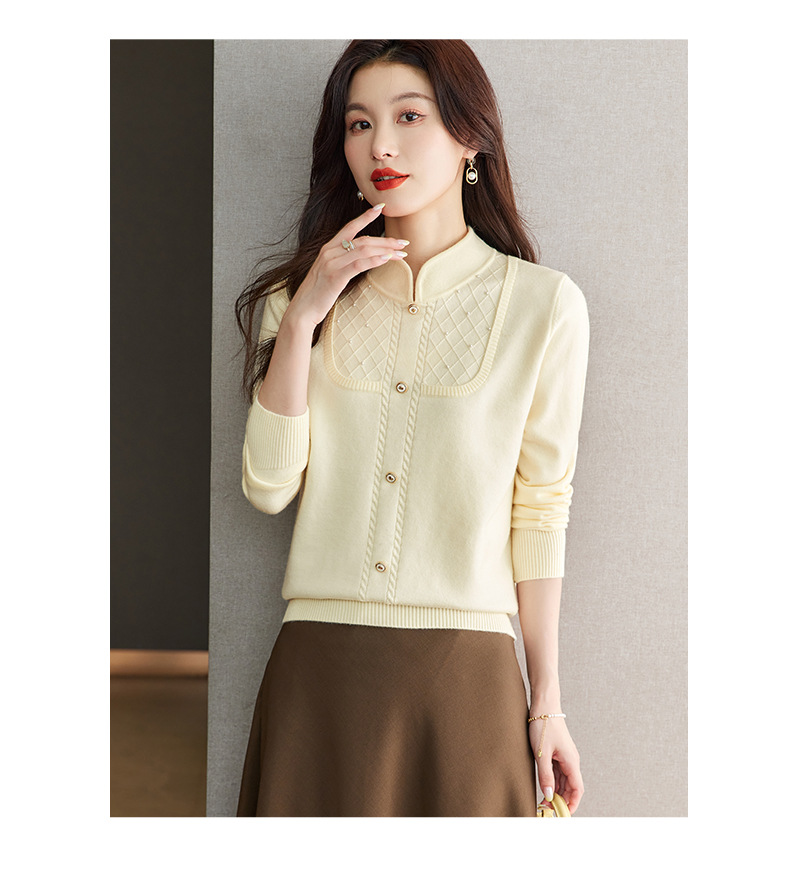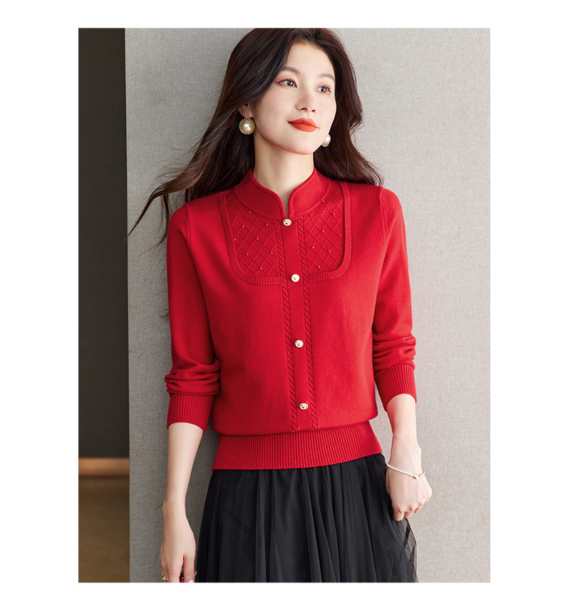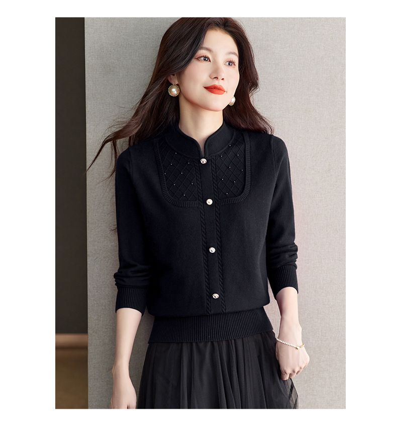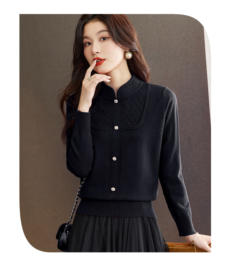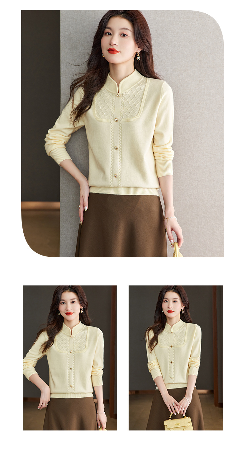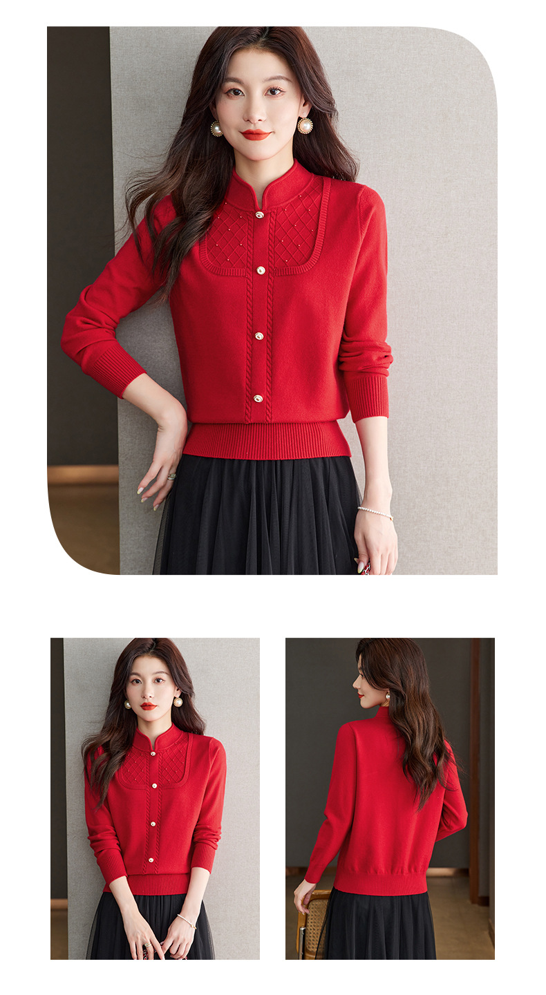 CC-66-5845新中式国风假两件针织衫上衣女新款设计感时尚立领打底衫修身毛衣