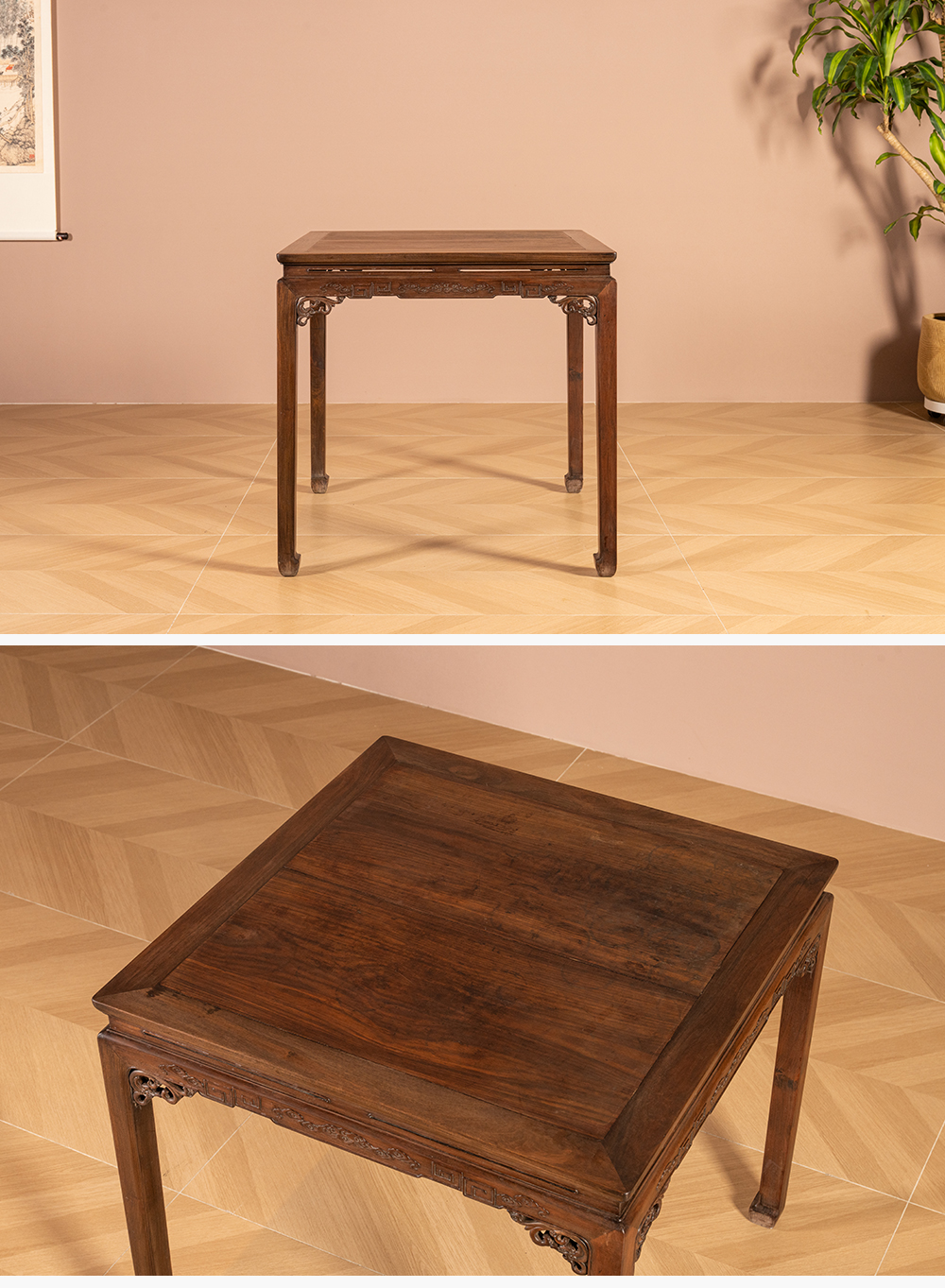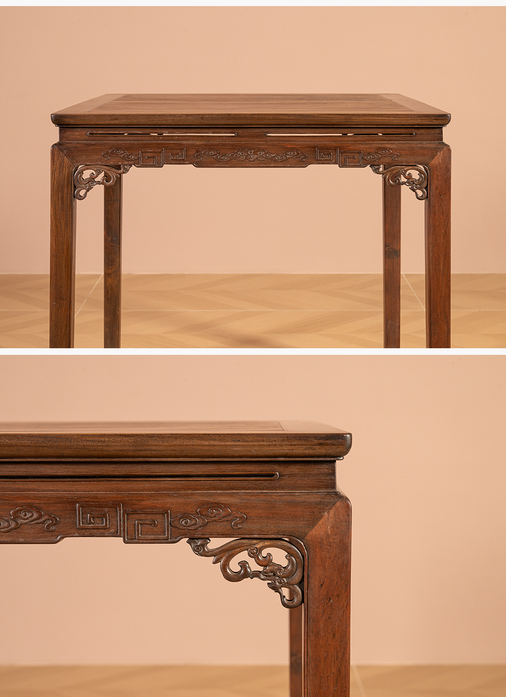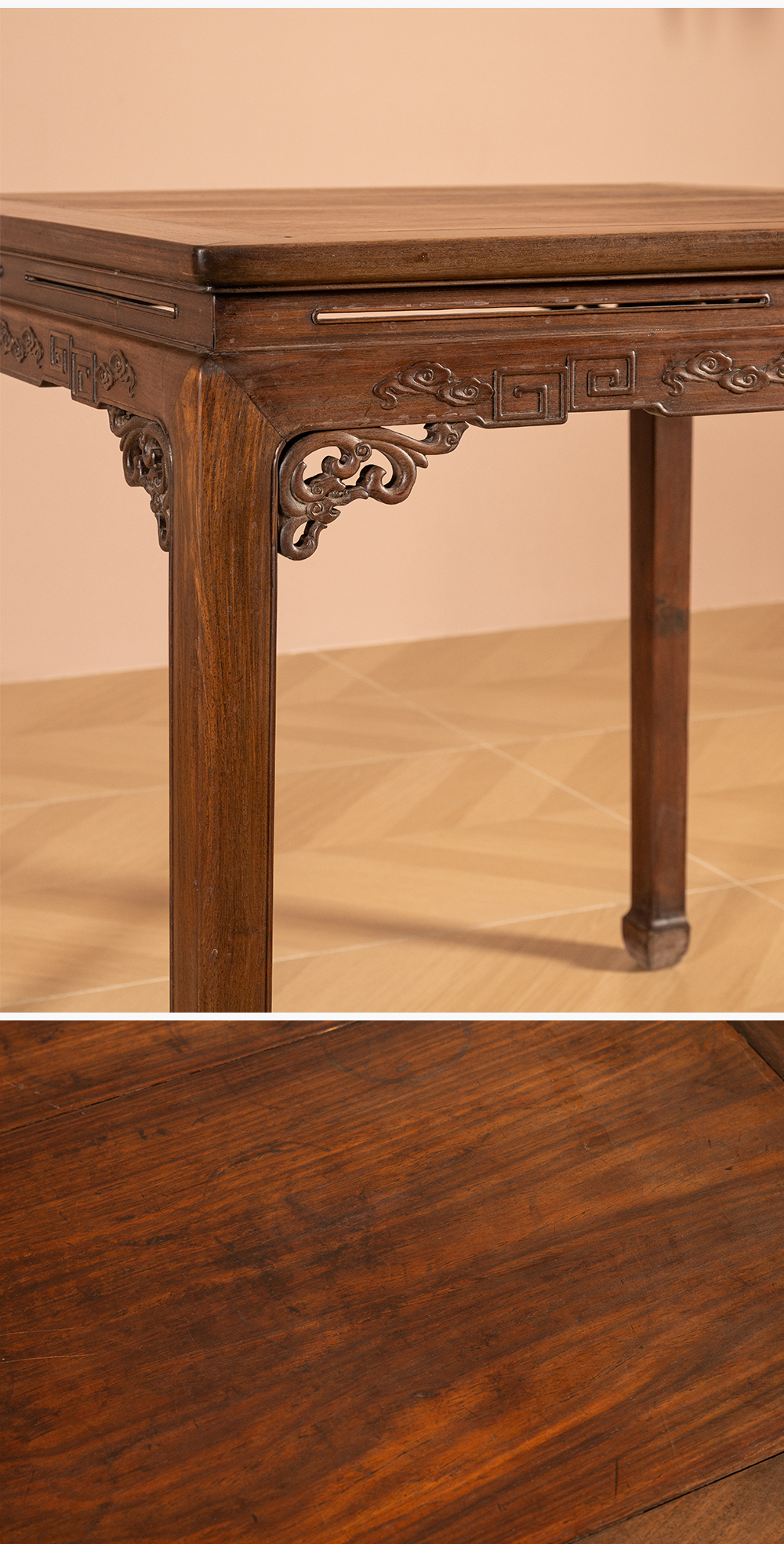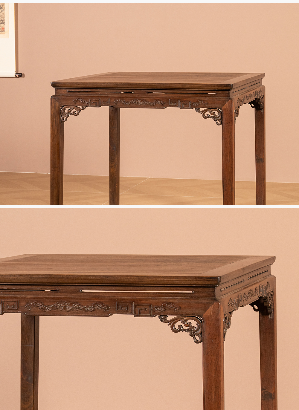 清 黄花梨镶绿石透雕螭龙纹大插屏