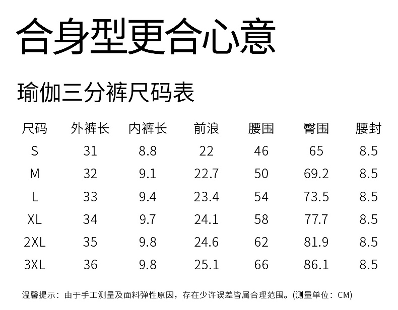 梵美人 F6076 瑜伽三分裤 莱卡云 无松紧 无尴尬线