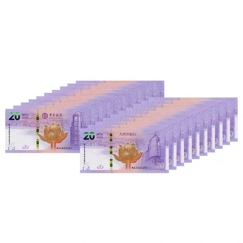 2019年澳门回归祖国20周年法定纪念钞对钞(中国银行和大西洋银行各一张)