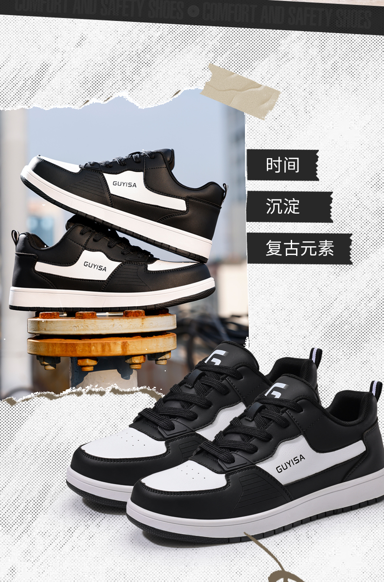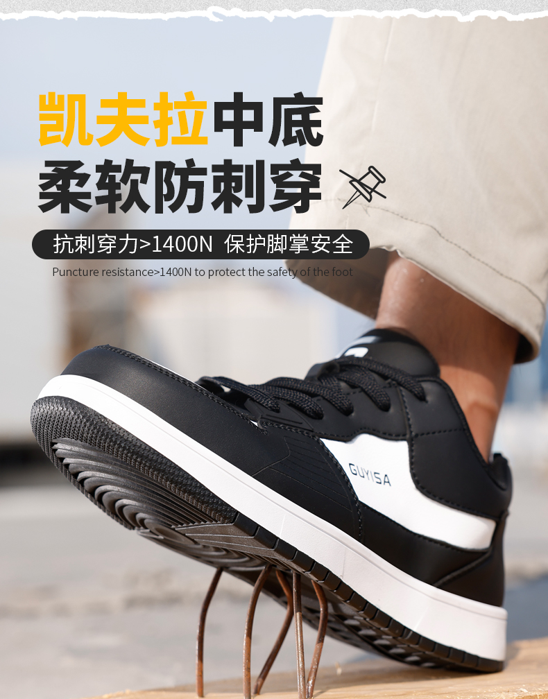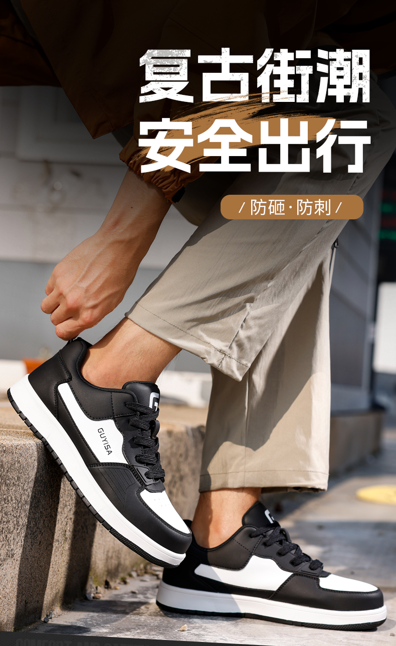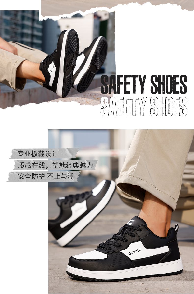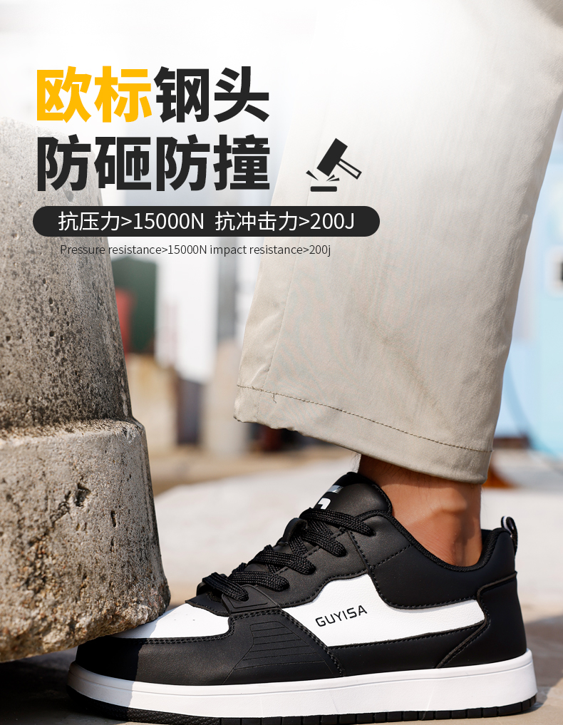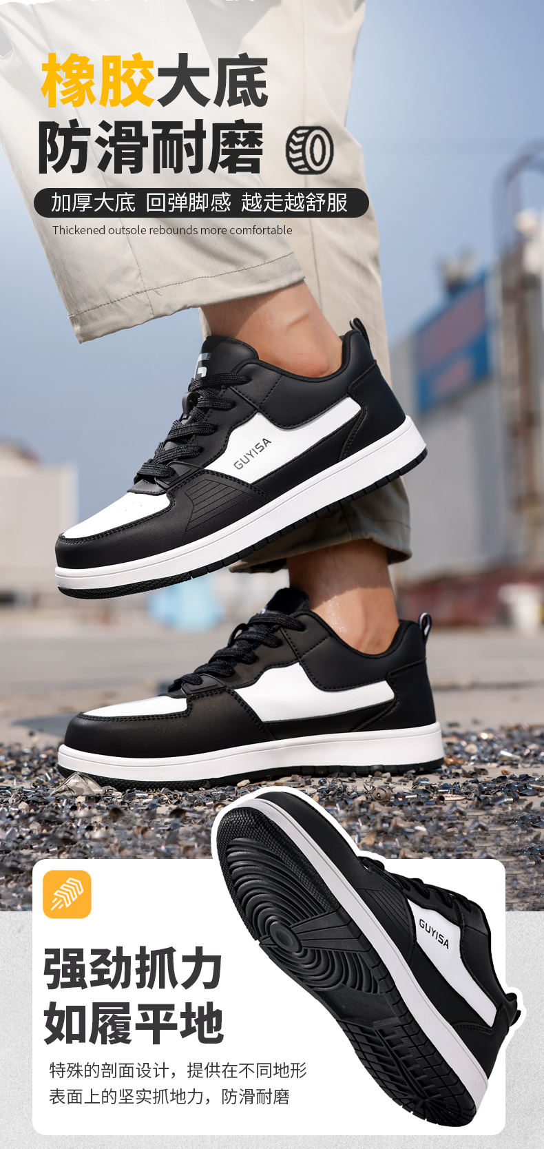 劳保鞋男防砸防刺橡胶底四季款板鞋样式安全鞋钢包头
