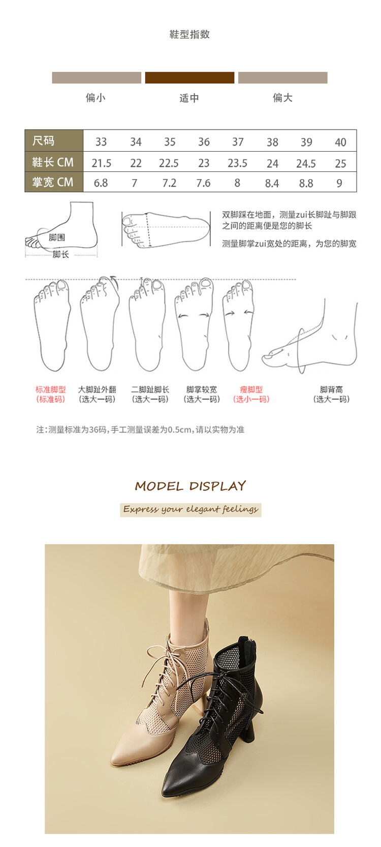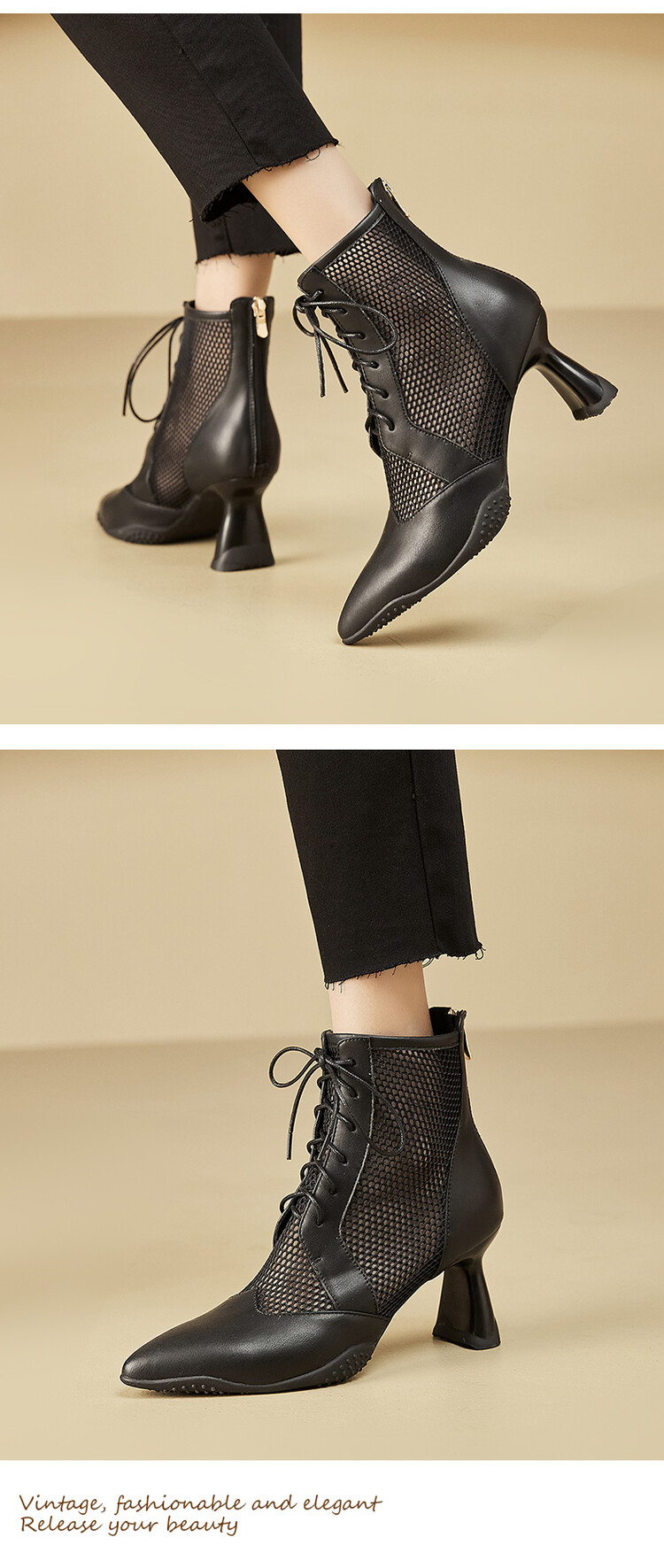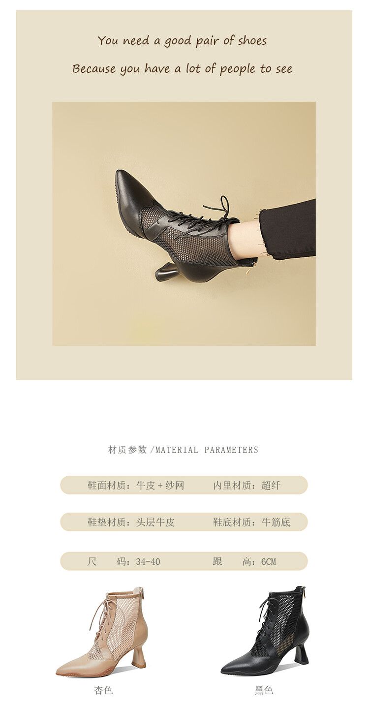 春季新款,时尚系带款网纱拼接运动底尖头高跟短靴CZ-CZ375