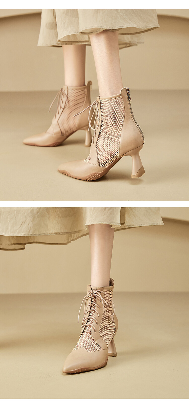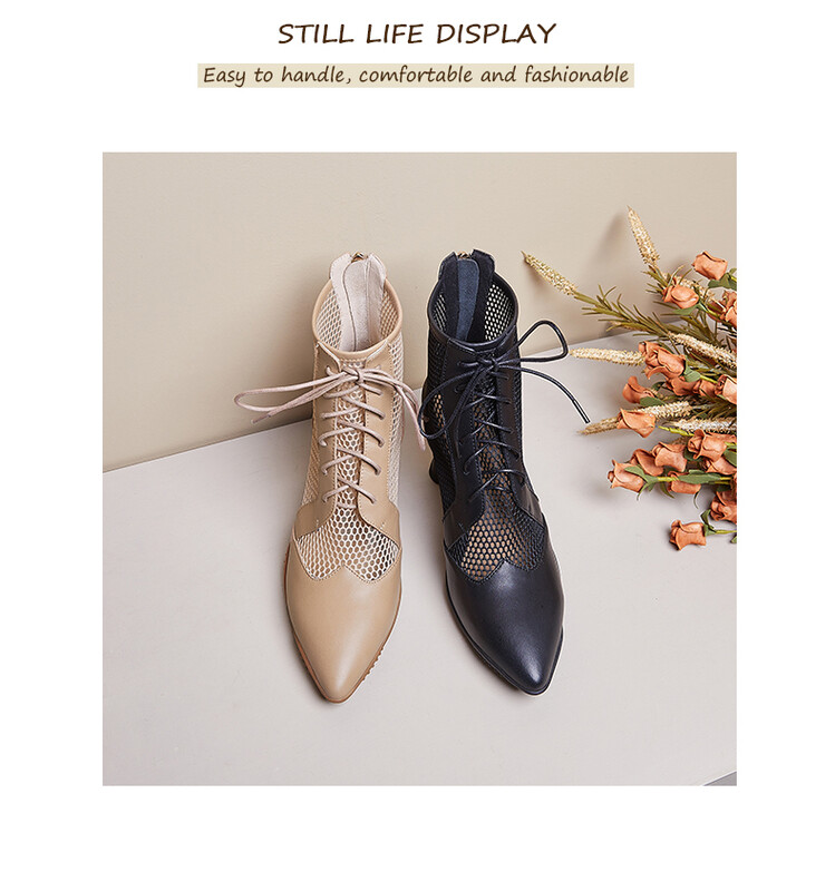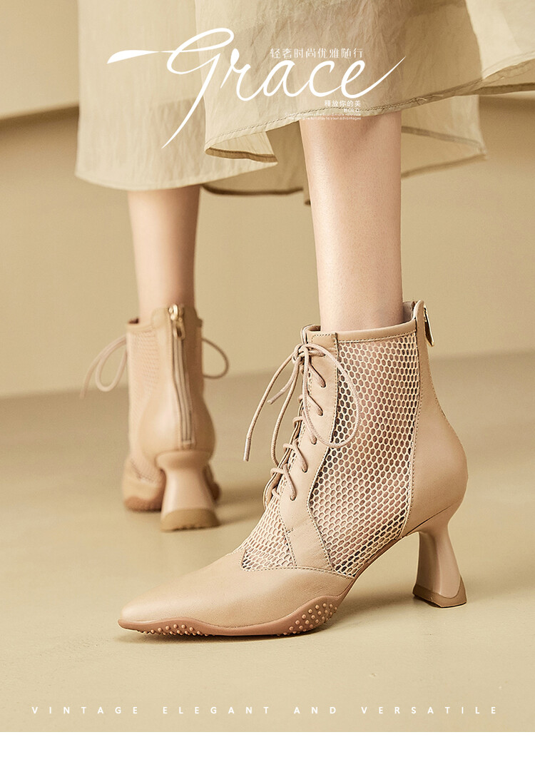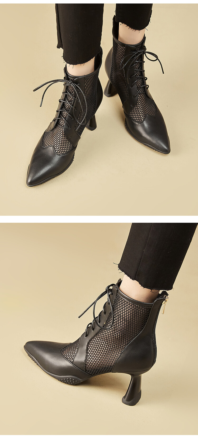 春季新款,时尚系带款网纱拼接运动底尖头高跟短靴CZ-CZ375