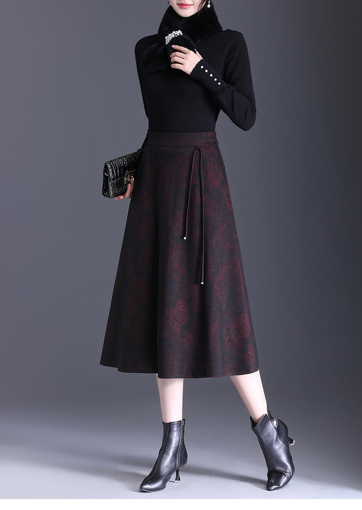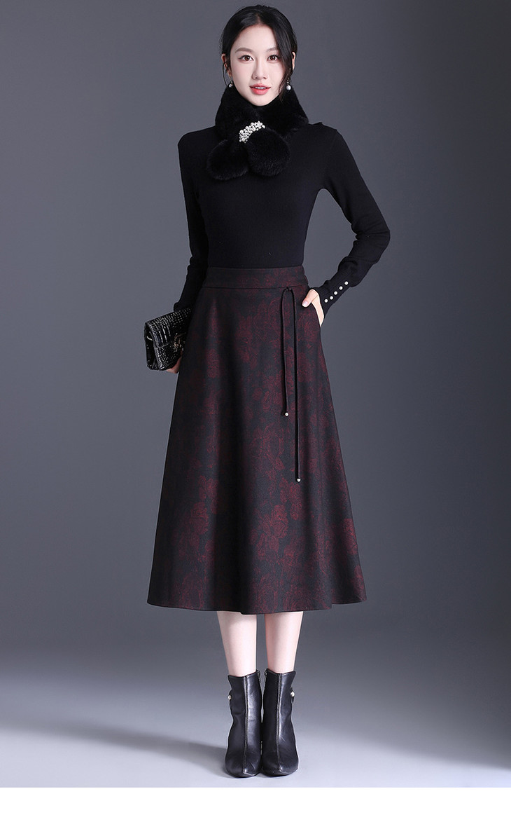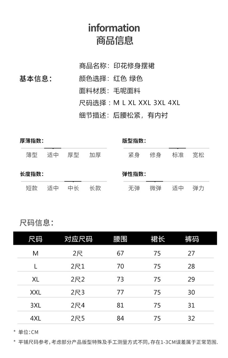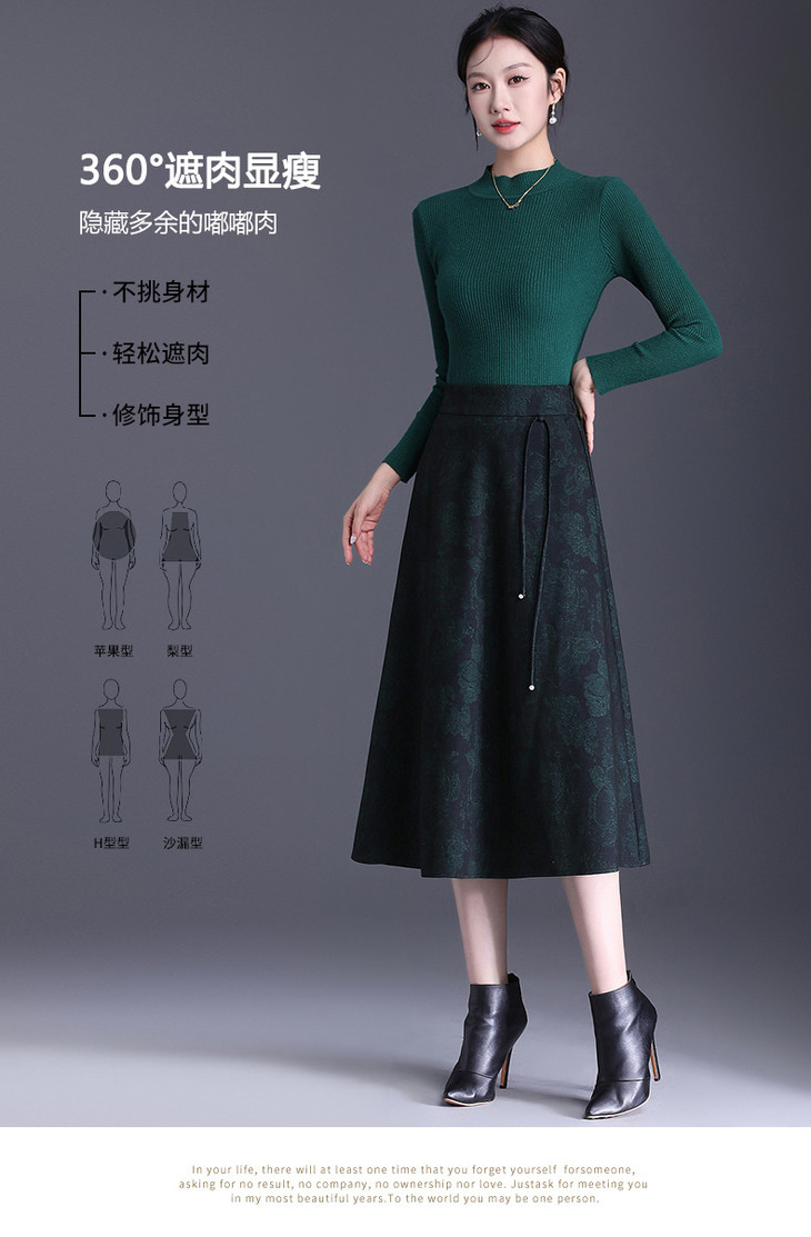 垂感修身印花中长款通勤时尚A字裙MYX8832
