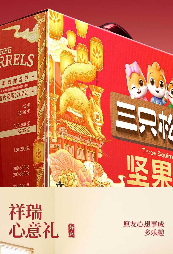 【三只松鼠_瑞红坚果大礼包12袋1700g】 坚果礼盒零食送礼