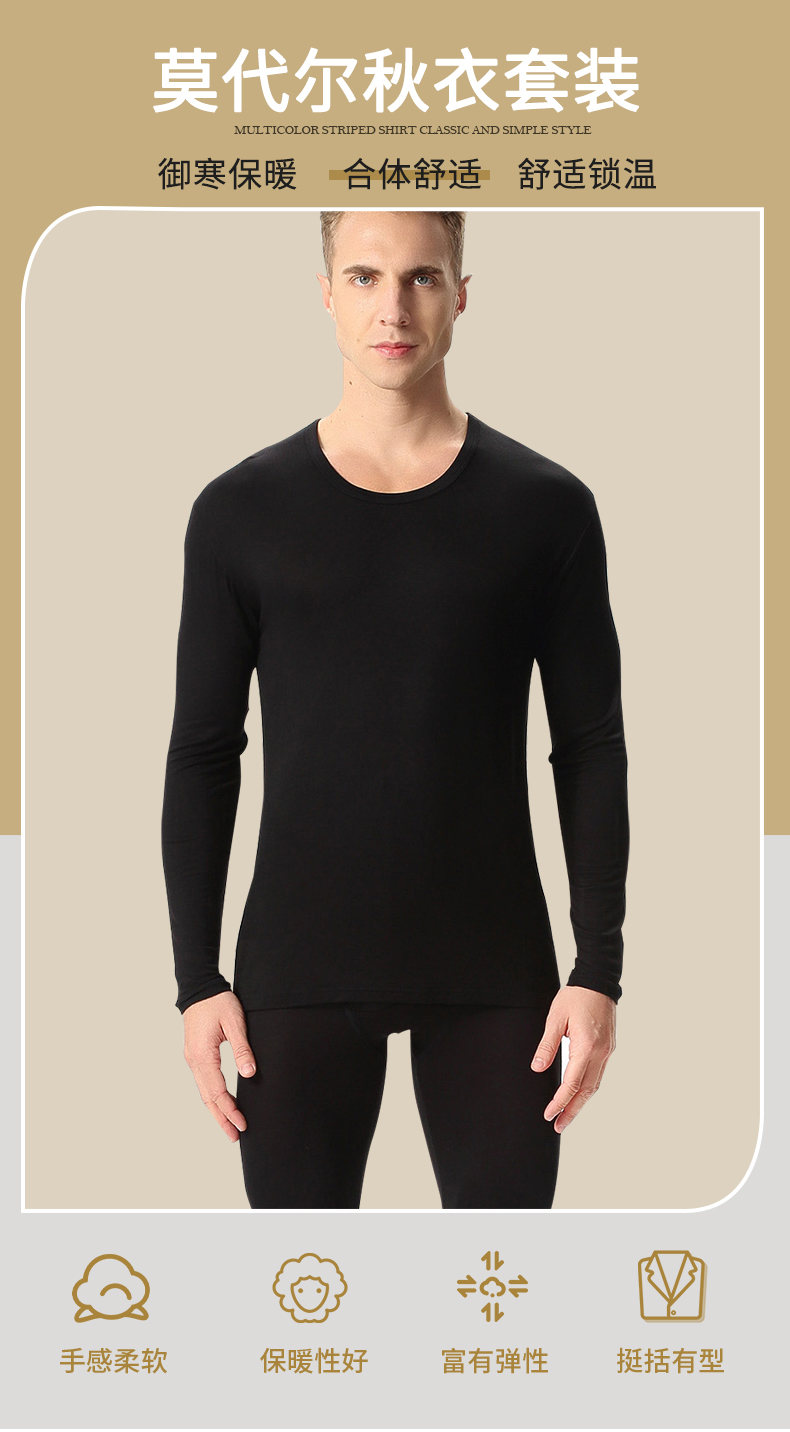 【新款秋衣秋裤套装】三色大依优型秋冬男士莫代尔加肥加大内衣大码高弹力秋衣秋裤套装大号男装红色本命年