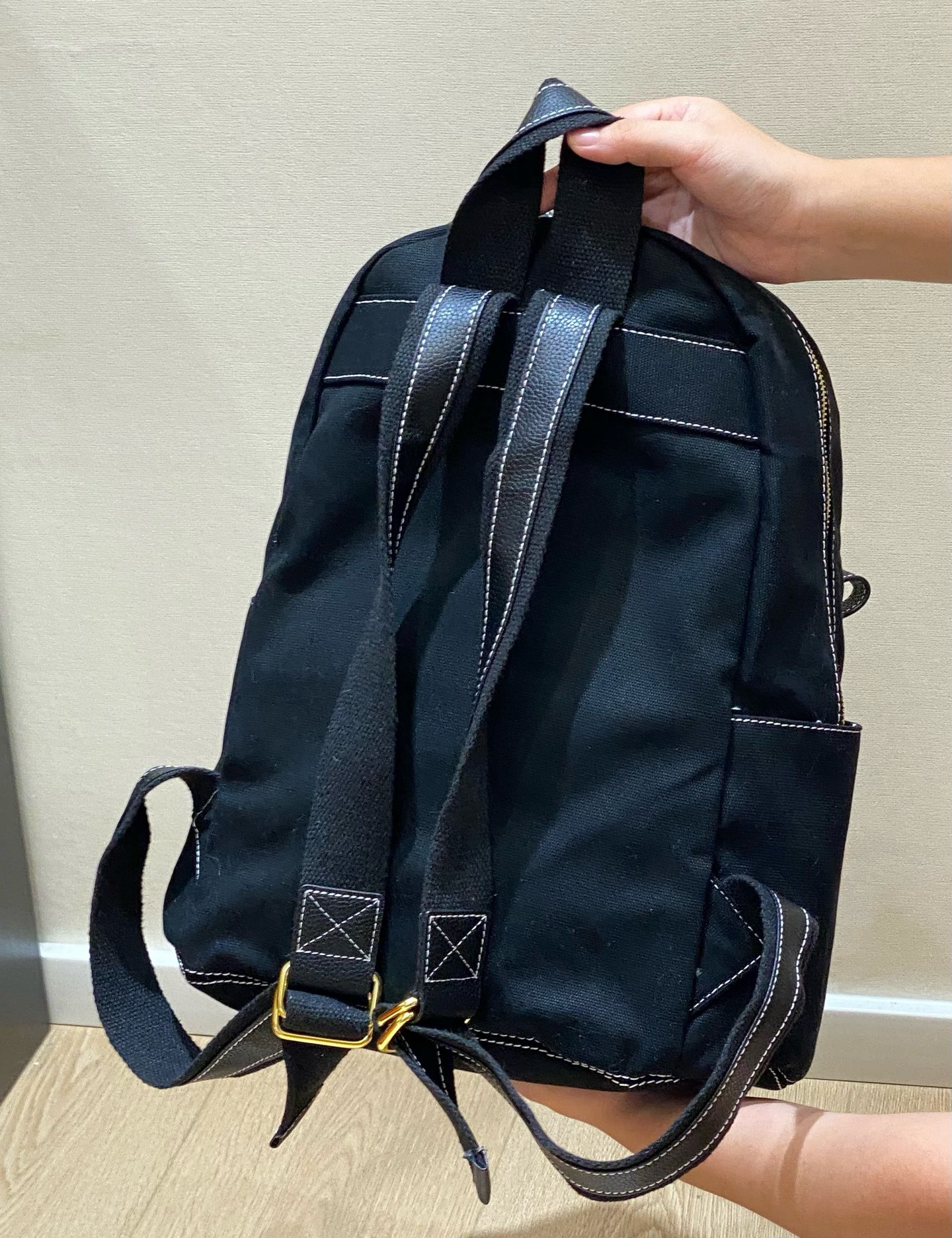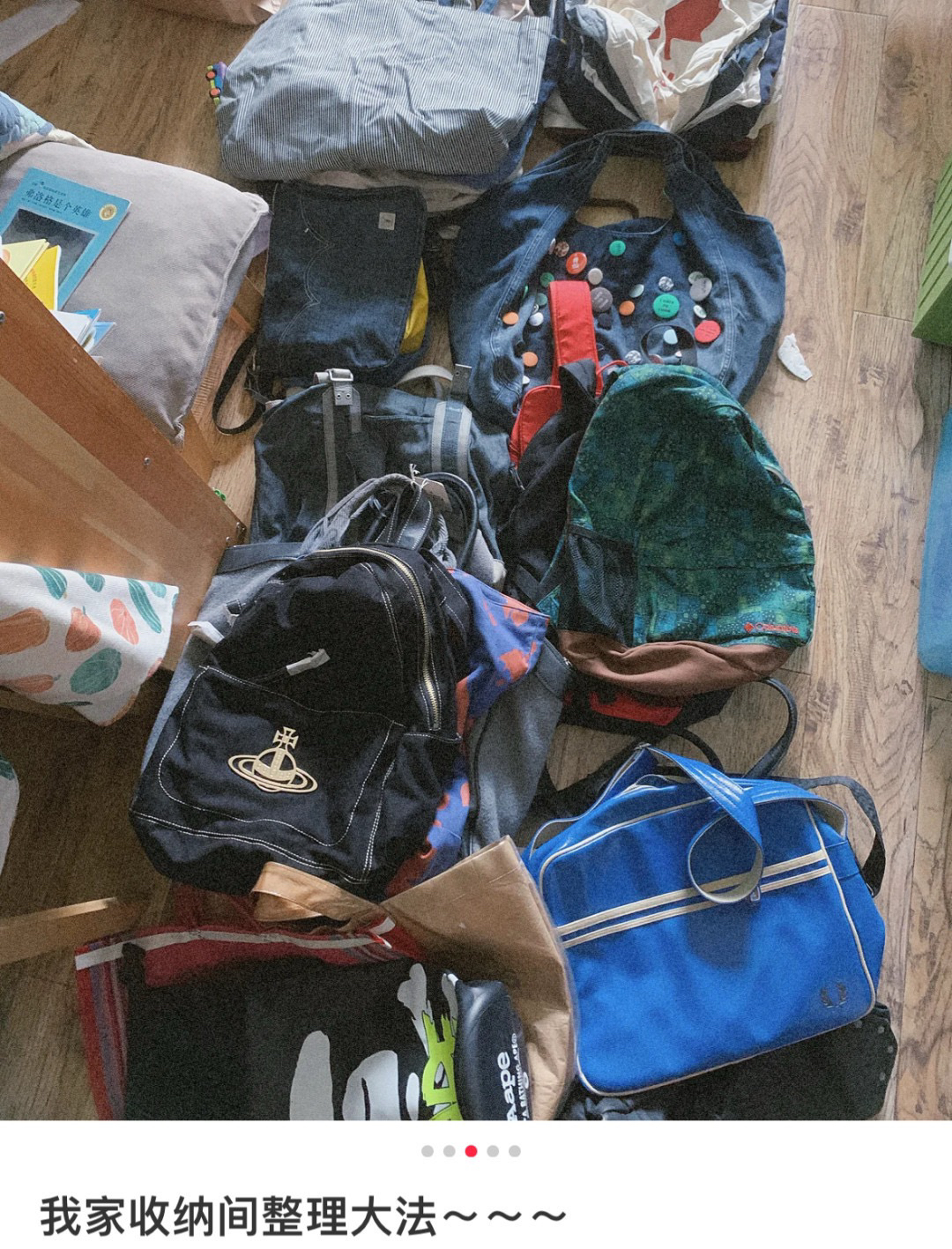 平常出门所有东西都能塞下,肩带可调节