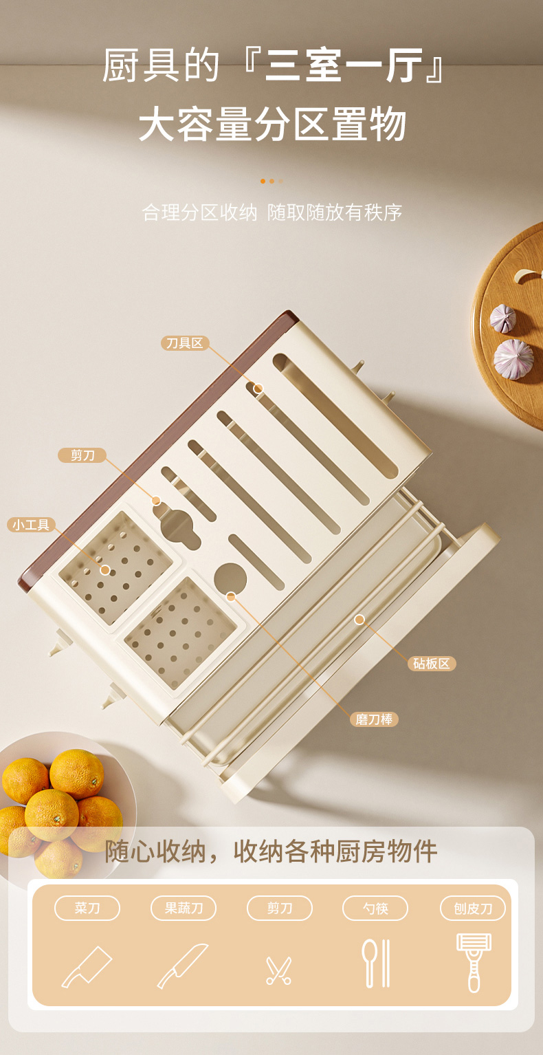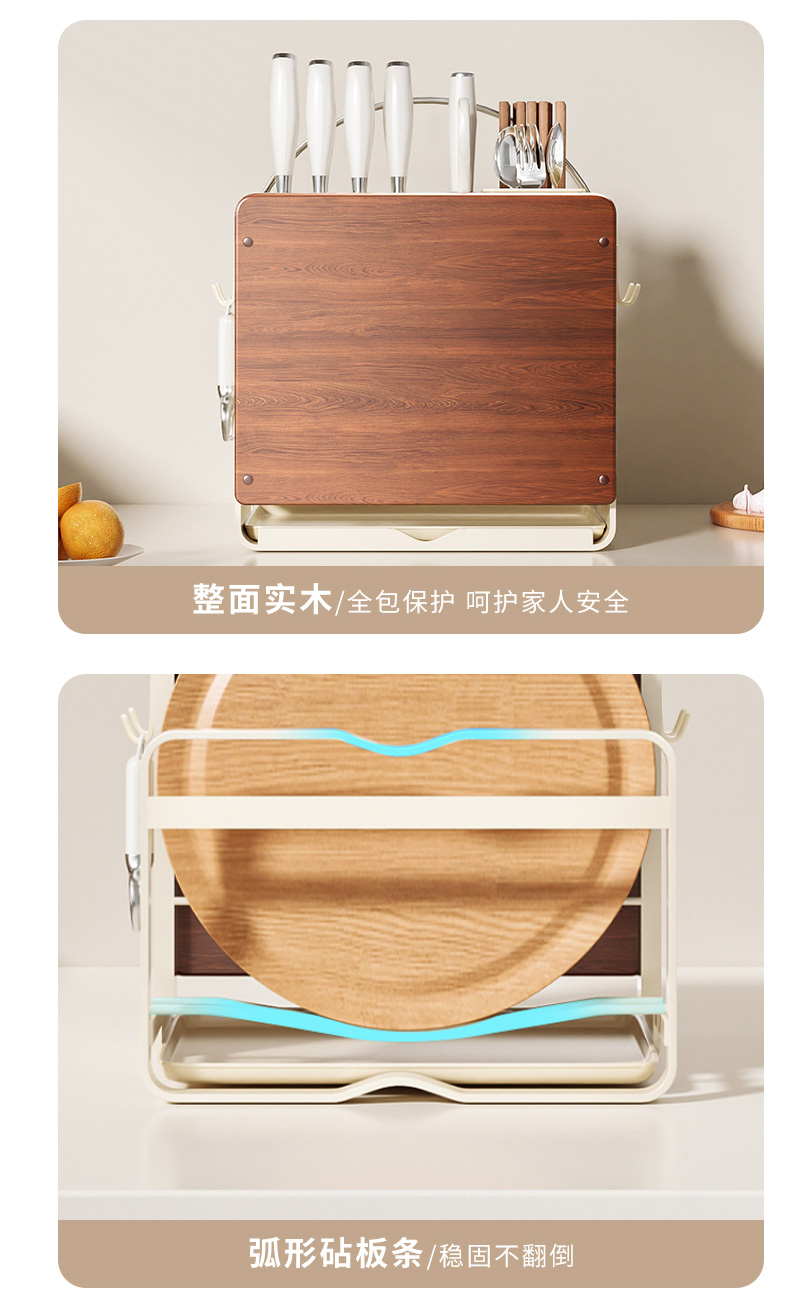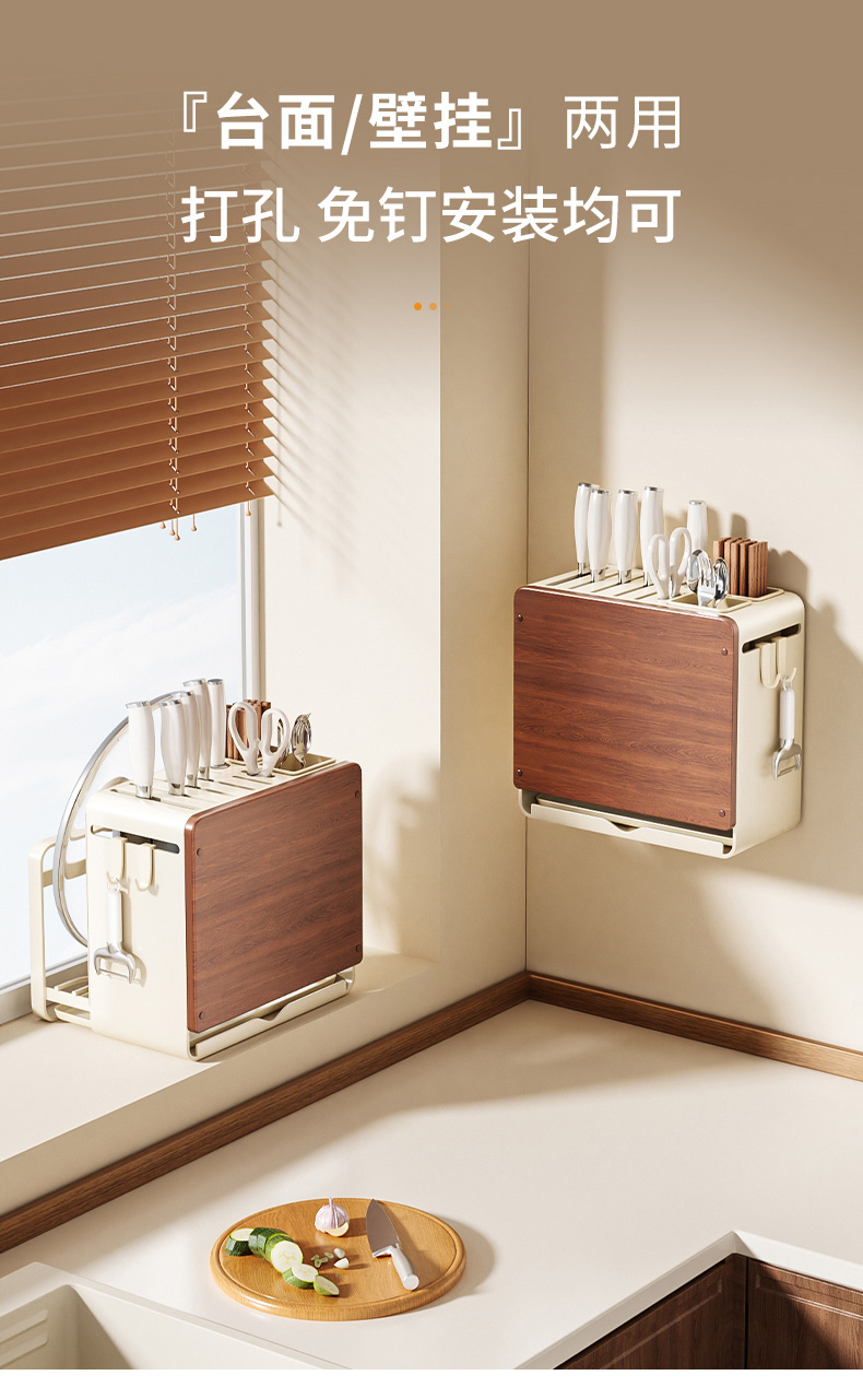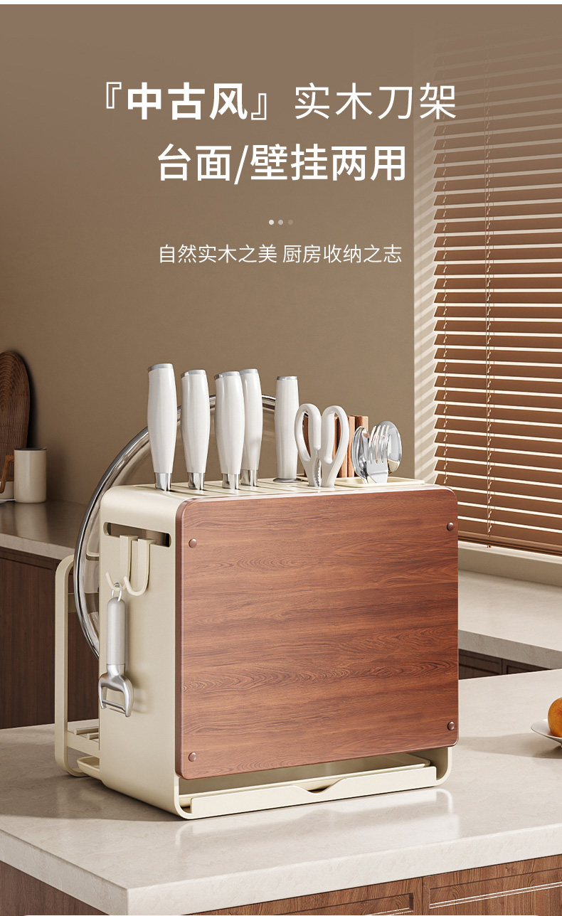 摩登主妇中古风刀架置物架2025新款厨房菜刀菜板架一体刀具收纳架